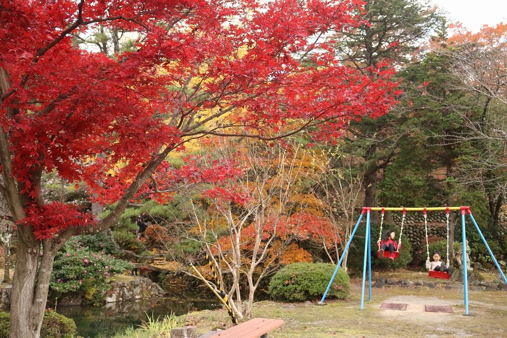 「寺家公園」と言っても敷地はとても広大です。しかし、その中でも、駐車場から比較的近くにある「姉倉比賣神社」の正面大鳥居周辺、紅葉狩りへの小道、遊具のある公園は、家族連れでも充分楽しめます。