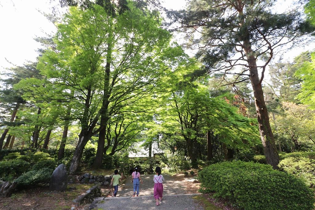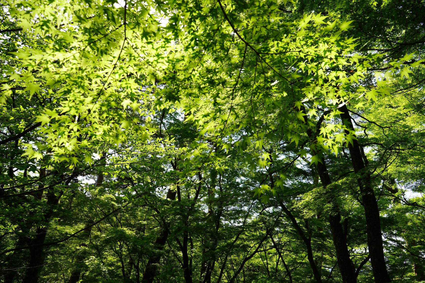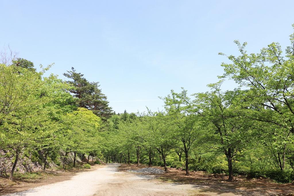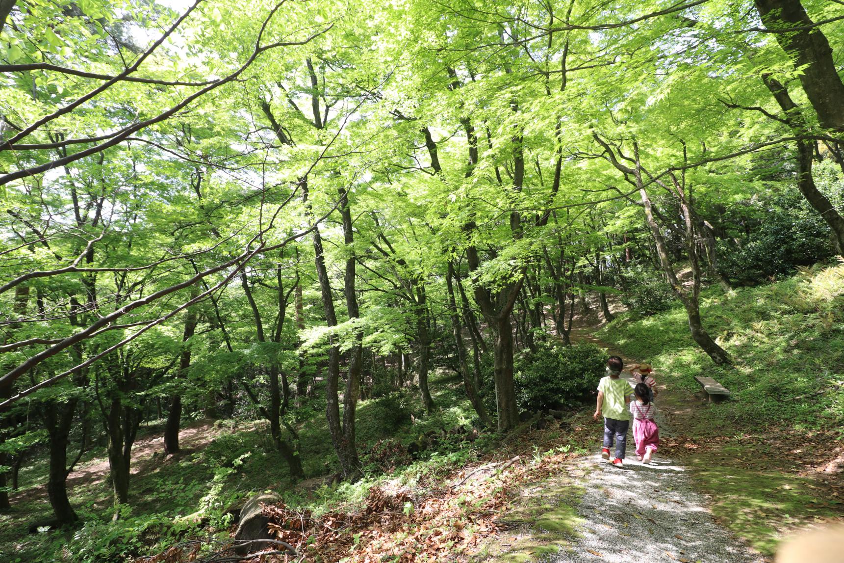 「寺家公園」は、新緑の時期もとても綺麗です。太陽の光を浴び、キラキラと輝く新緑。「紅葉狩はこちら」の小道でぜひ、新緑を味わって見てください。美味しい空気に、目の前に広がる絶景にと癒されます。