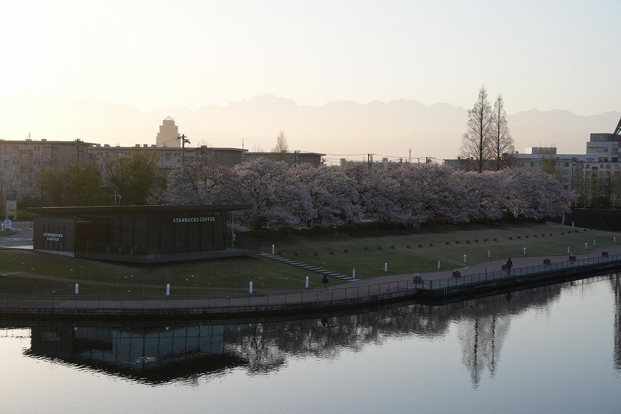 富岩運河環水公園は桜の名所としても知られ、「ソメイヨシノ」だけではなく、「エドヒガン」など様々な桜が楽しめ、運河や天門橋と合わせた景観は格別です。