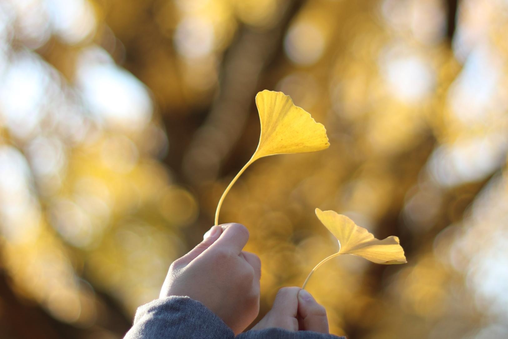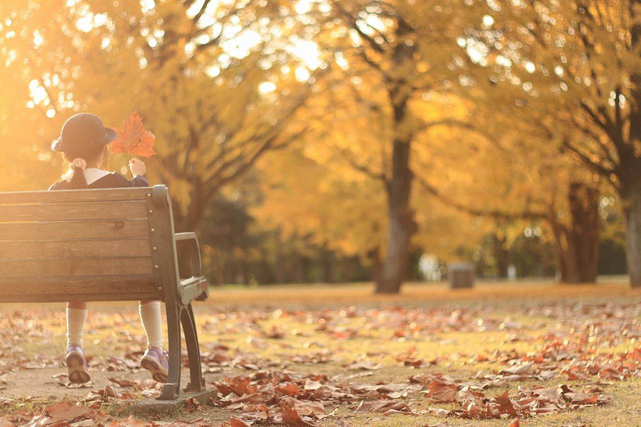 子供たちは落ち葉に興味津々!太陽の光で輝く銀杏の絨毯に寝転んで遊んだり、顔より大きな落ち葉を見つけてきては、見せてくれたり、と楽しんでいました。銀杏だけではなく、もみじなど他の落葉樹の木々もたくさんある公園です。日中から夕方にかけて、光が降り注ぐ時間は特にオススメです。