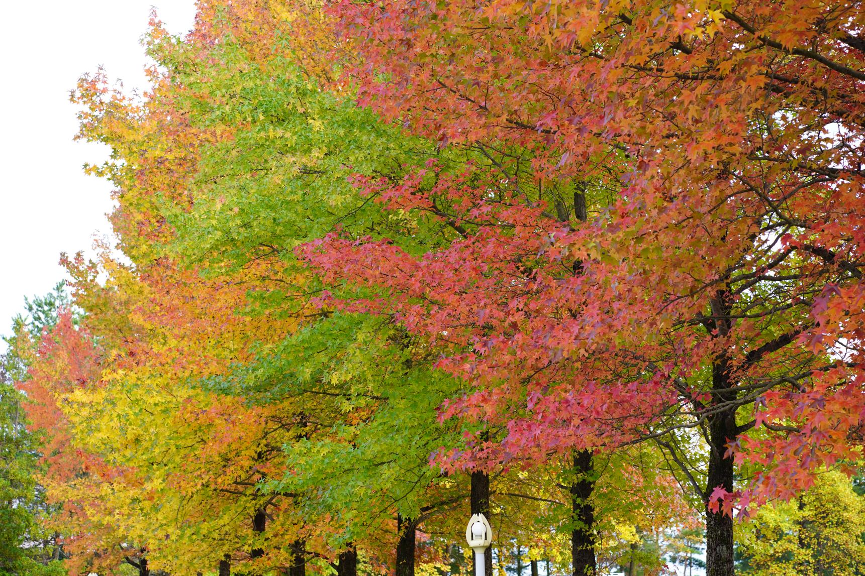 「ふるさとパレス」横に芝生広場があり、そこの木々の紅葉が色とりどりで綺麗でした。