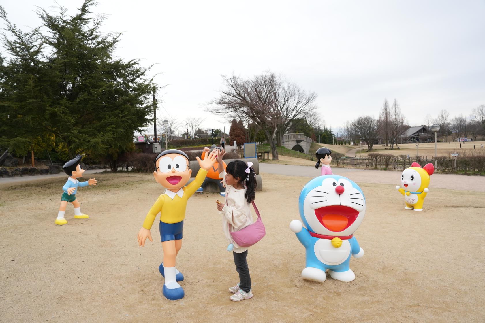 この公園には、藤子・F・不二雄先生の代表作『ドラえもん』に登場する空き地が再現され、「ドラえもん」や「のび太くん」の等身大像があります。子供たちはいつもここを目指して、走って行きます。会えて、一緒に写真を撮れて嬉しい、大人気のスポットです。