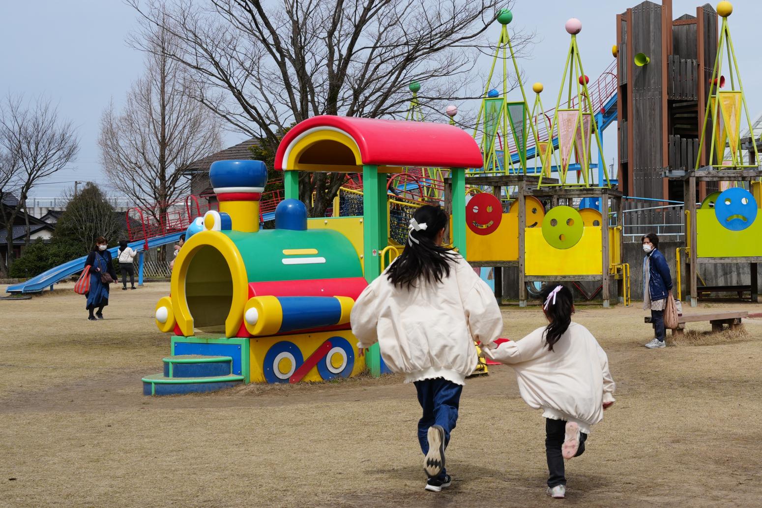いつも遊具で遊ぶので、車で訪れるときは西側駐車場に停めています。また、東側駐車場から西側駐車場へ通じる道路は、土日のみ、片側は駐車可能に!