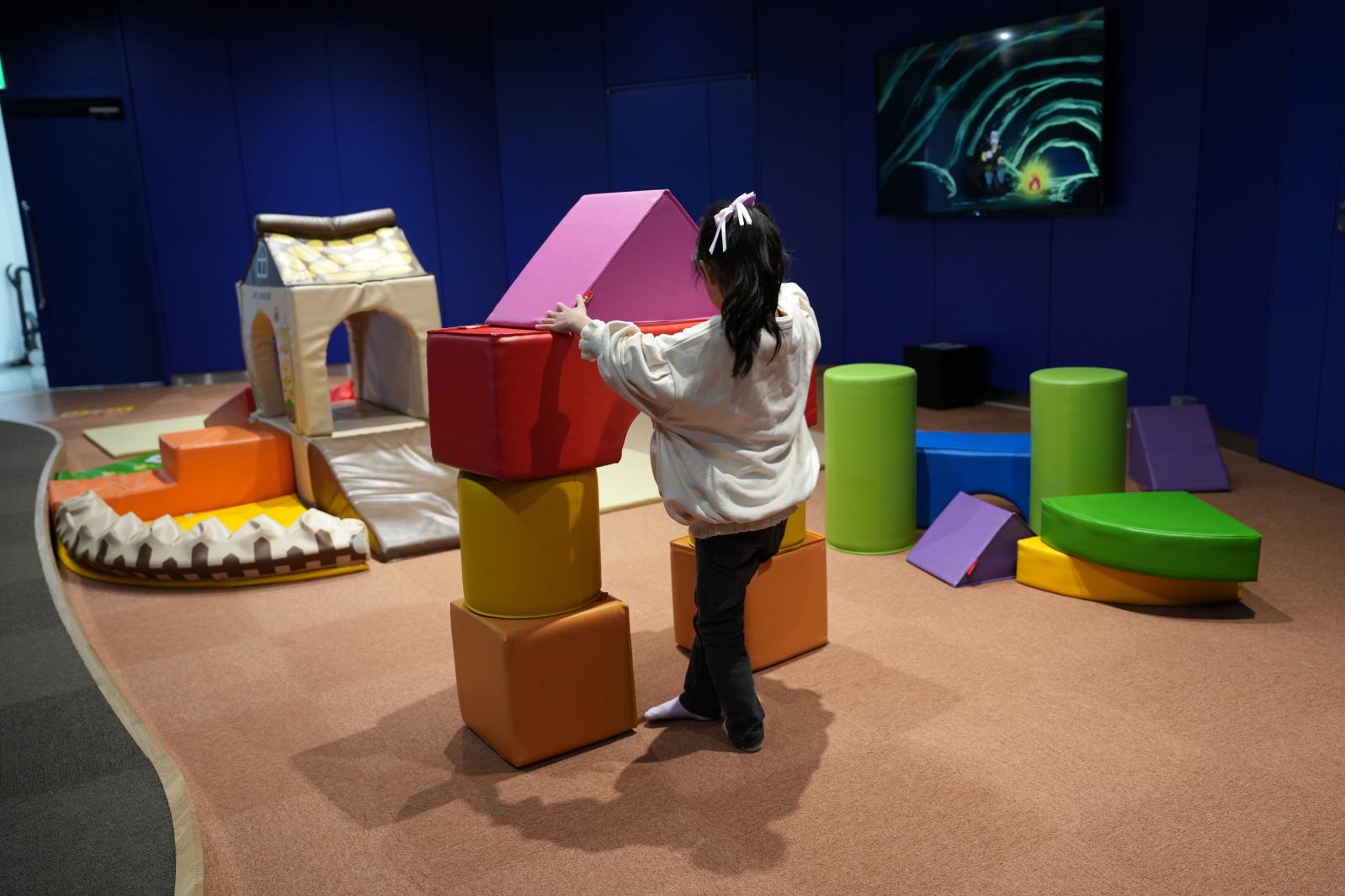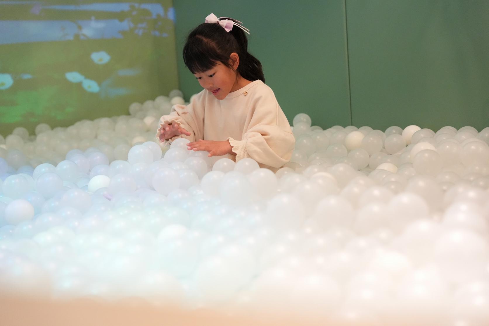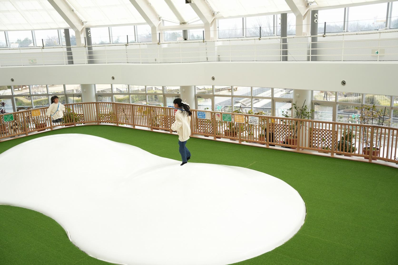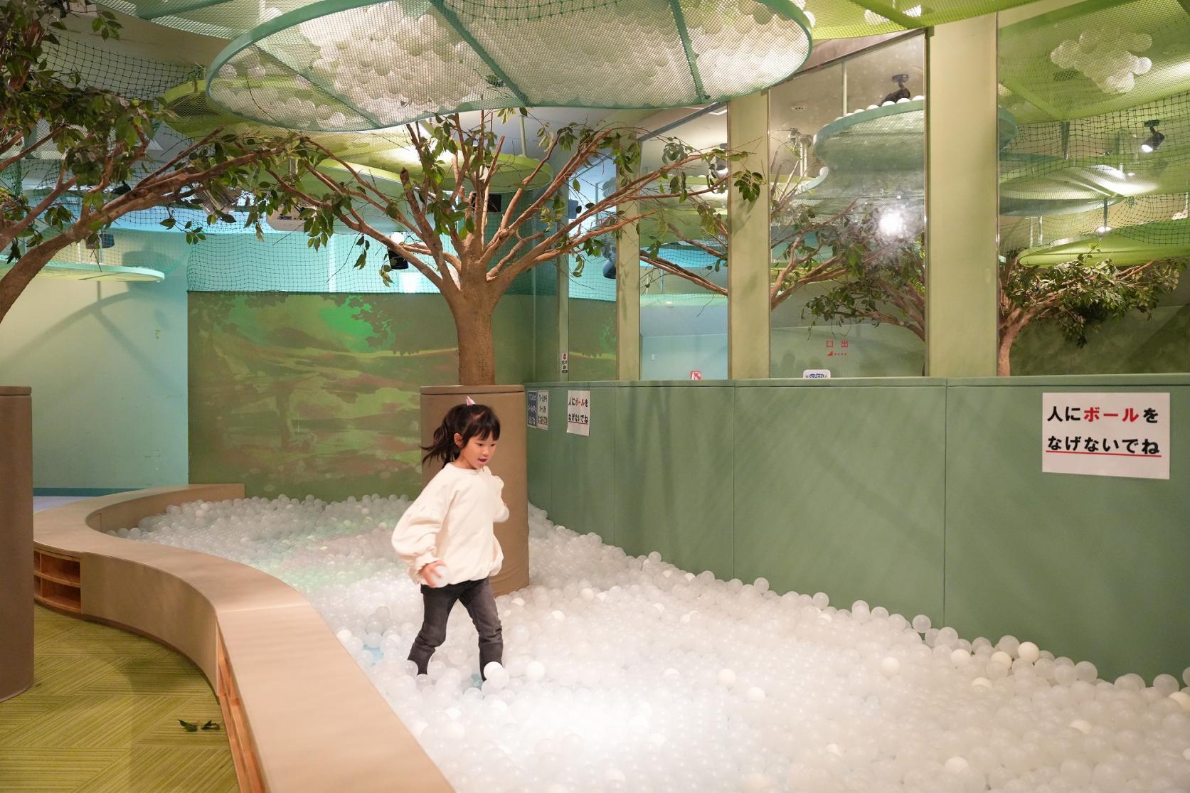 1階には、国内で初の室内型「ふわふわドーム」があります。2階には、6歳児までが対象の遊び場「ボールプール」などがあり、安心して遊べます。雨の日だけではなく、夏は涼しく、冬は暖かく、子供たちも楽しめる施設です。また、1階には休憩できる椅子やテーブルも充実しており、ここでおやつタイムをすることもあります。1階には、自動販売機もあります。