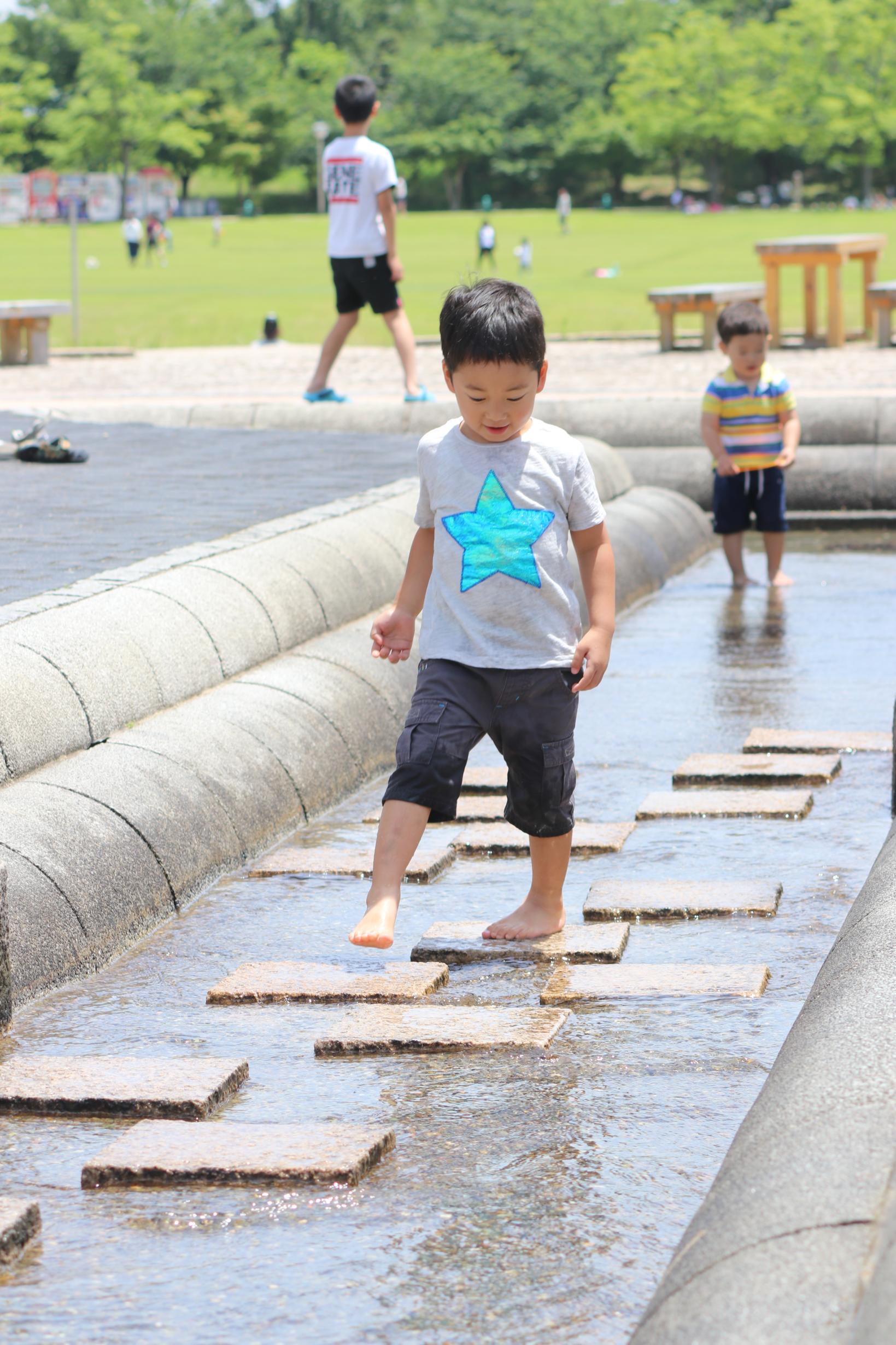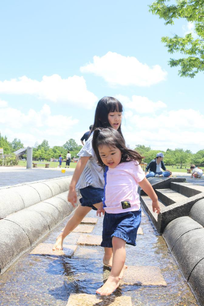 「ドラえもんの空き地」と「インクルーシブ遊具」の間には、小川が流れており、小さい子供たちの水遊びにピッタリ!浅いので、子供が1歳のころから座って遊んでいた記憶があります。