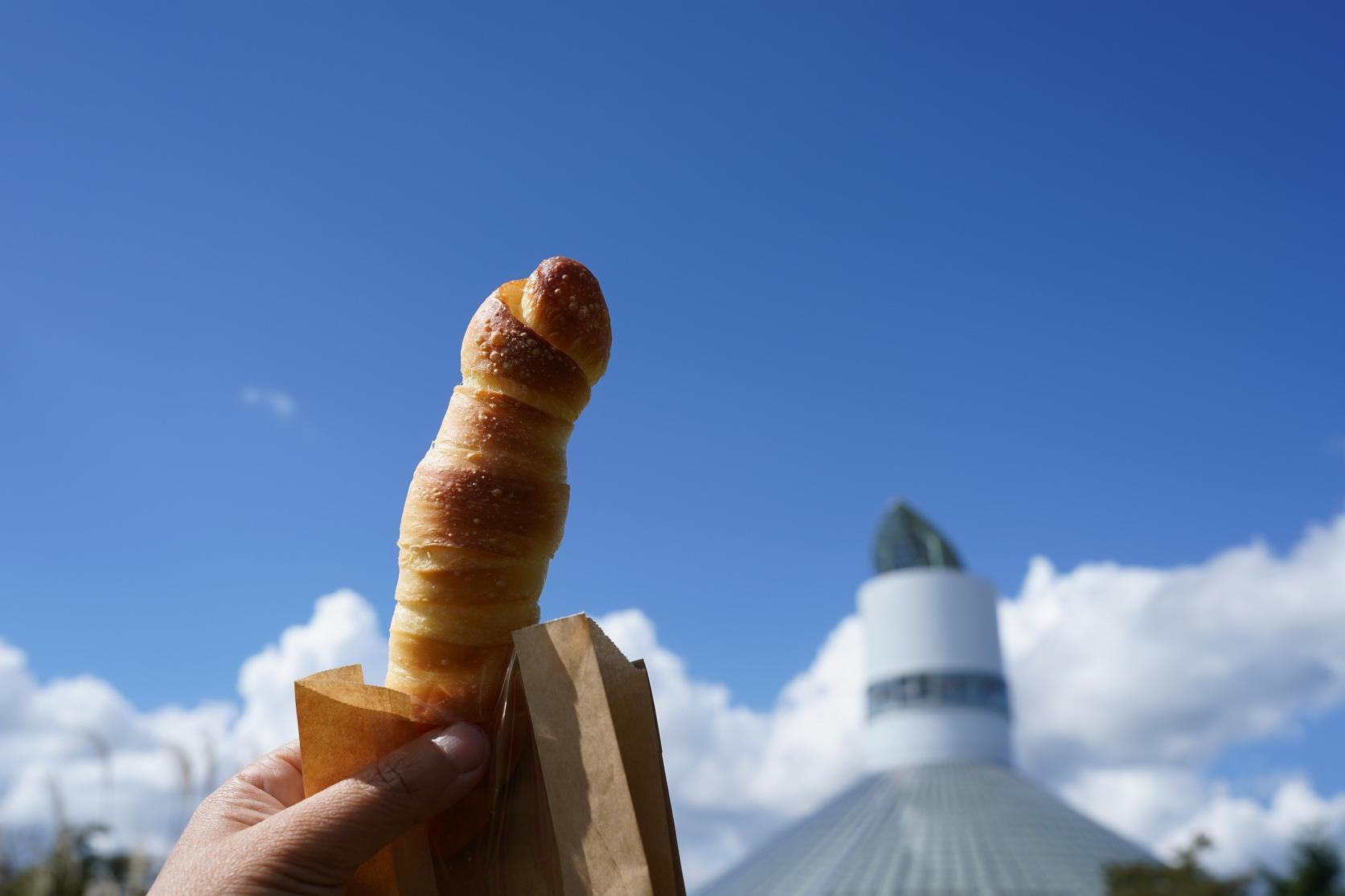 公園を訪れるたびに立ち寄る大好きなパン屋「Bread Plus+(ブレッドプラス)」!こじんまりとしたお店ですが、店内には数十種類のパンがずらり!中でも数種類ある塩パンはオススメ!この日も大人気の塩チョコパンは、残り1つでした。表面に塩が少々、中には甘すぎないミルクチョコの棒が入っていて、塩味とチョコ味が絶妙にマッチ!子供たちにも大好きなパン屋さんです。