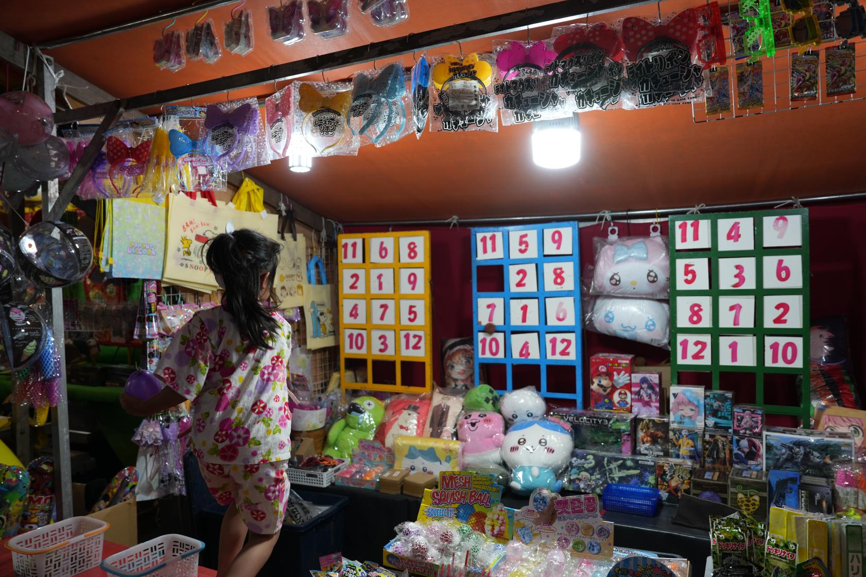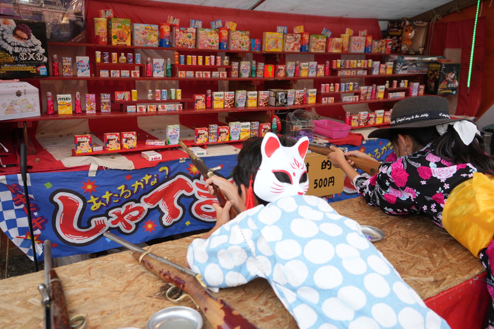 数ある露店の中で、自分のやりたいことや食べたいものを見つけるのも楽しみのひとつです。子どもたちは「お小遣いはいくら!」と決め、ワクワクしながら好きなものを探して回っています。写真で紹介したのはほんの一部です。他にも「わなげ」や「くじびき」といったゲーム類、飲食では「わたがし」「たこ焼き」「からあげ」「ベビーカステラ」「きゅうりの漬物」など、書ききれないほどたくさんのお店が並びます!