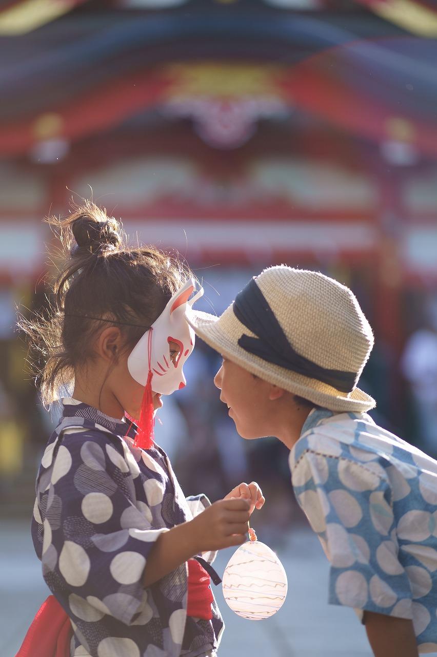 「(お面をかぶり)似合う?」と兄妹で笑い合うひととき、「あんばやし」を手に笑顔でほおばる姿、射的に夢中になる様子、怖いであろう「お化け屋敷」に「わあ!」と声をあげる瞬間、どれもが、かけがえのない思い出として心に残っていたらいいなぁと思います。