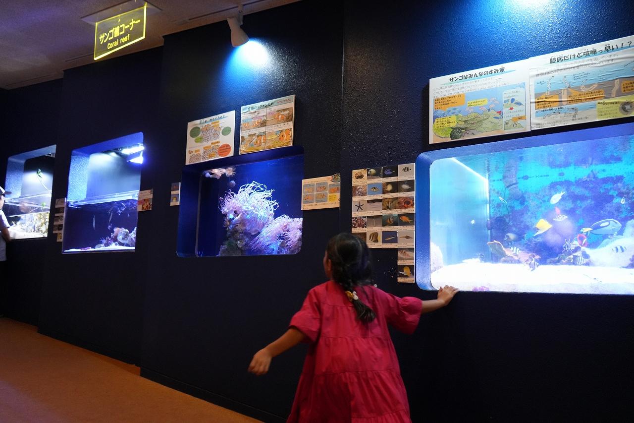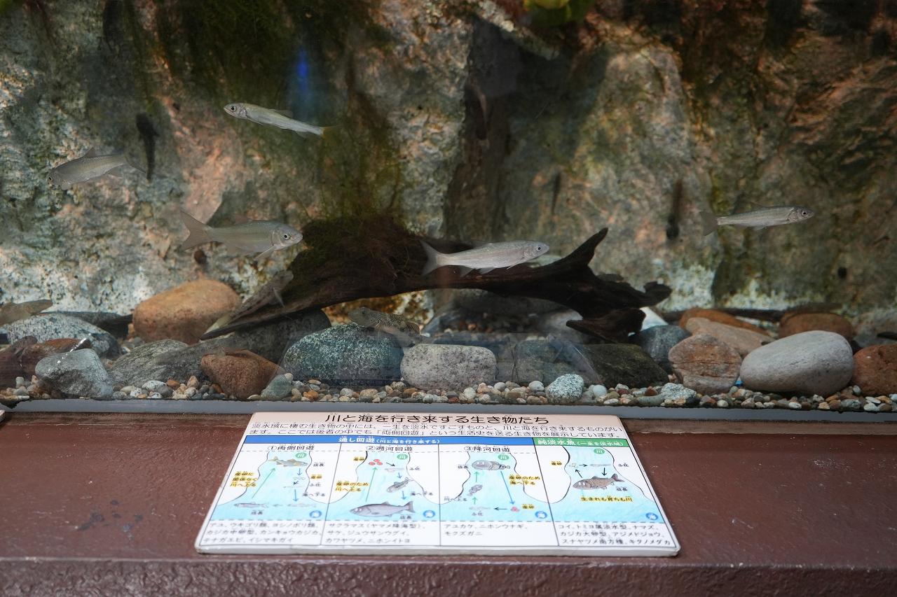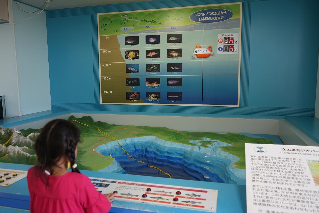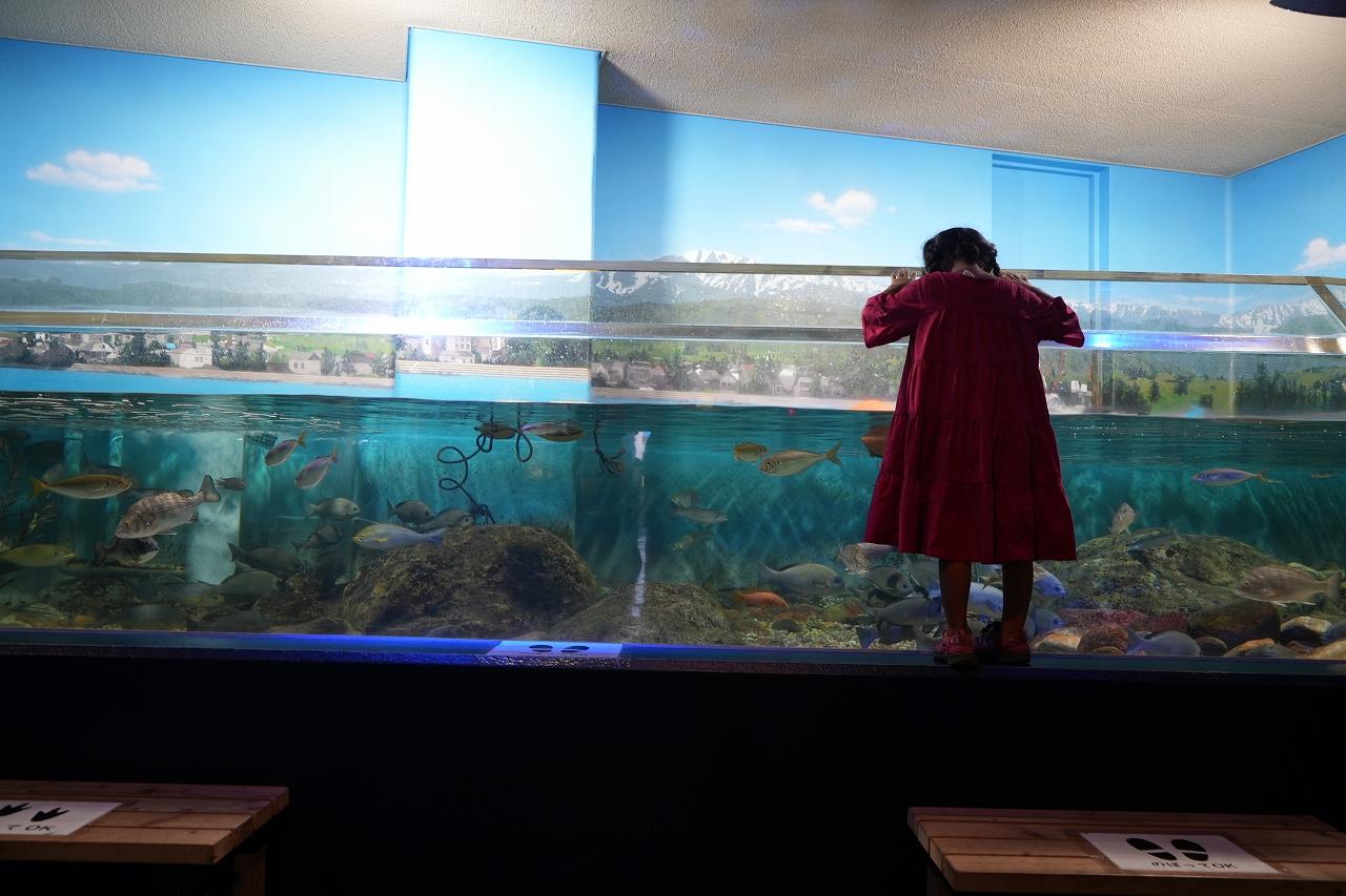 入口を抜けると、「富山の河川」に生息する生き物にスポットが当てられています。110㎝ほどの娘も間近で観察をすることができ「やご、いた!」「トンボになるんでしょ?」と興味津々!ここだけではなく、水族館全体を通して、子供が興味を持つ展示方法に工夫がされていました。