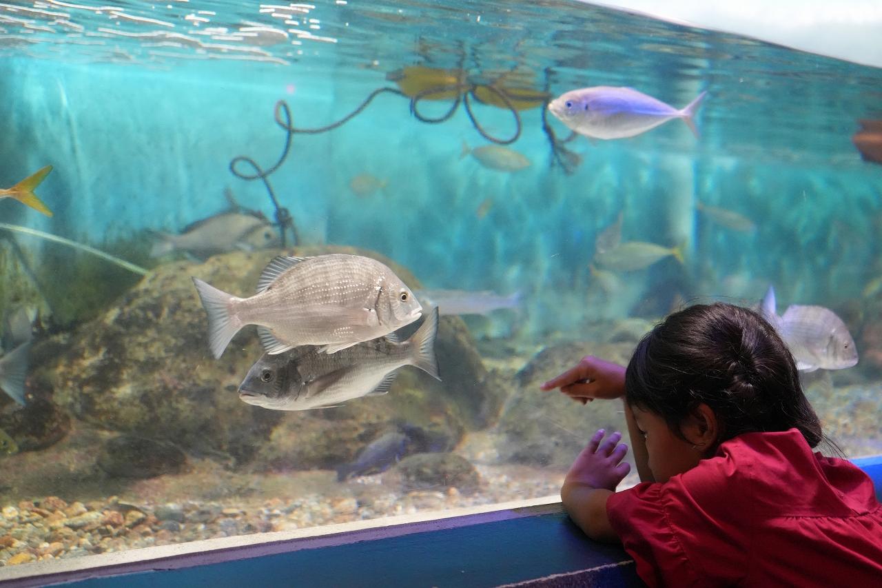富山湾には様々な魚がいます。ここでは、大きなブリ、カレイなどをはじめ、魚たちが元気に回遊しているのを見ることが出来ます。2023年12月にはブリ40匹が、追加されたとニュースになっていました。