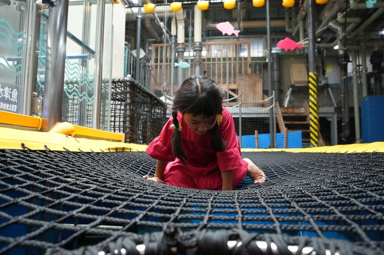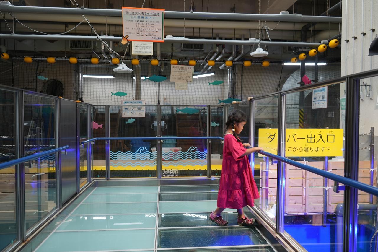 「バックヤード」もいつでも見学でき、土日は「富山湾大水槽」を間近でみられるネット遊具も利用出来ます。「さっき泳いでたよね?」「あの大きなブリだー!」と、娘も大興奮!寝転がりながら見るのも迫力がありました!