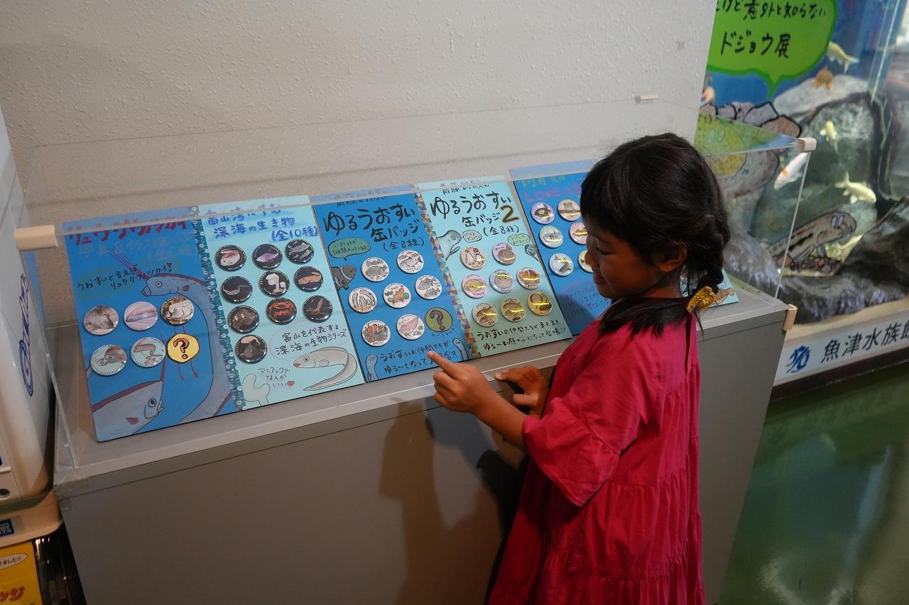 「ココに注目!」と、○○飼育員さんの詳しい解説のボードがたくさんありました。とっても勉強になること、面白い情報など必見です!小学生になれば、1つ1つ読みながら進むとより「魚津水族館」を楽しめます。また、飼育員さんが描いたイラストの缶バッチガチャガチャもあります。可愛いお魚さんのイラストからちょっとマニアックな生き物までが缶バッチに!ここでしか買えないので、ぜひ、お土産に!