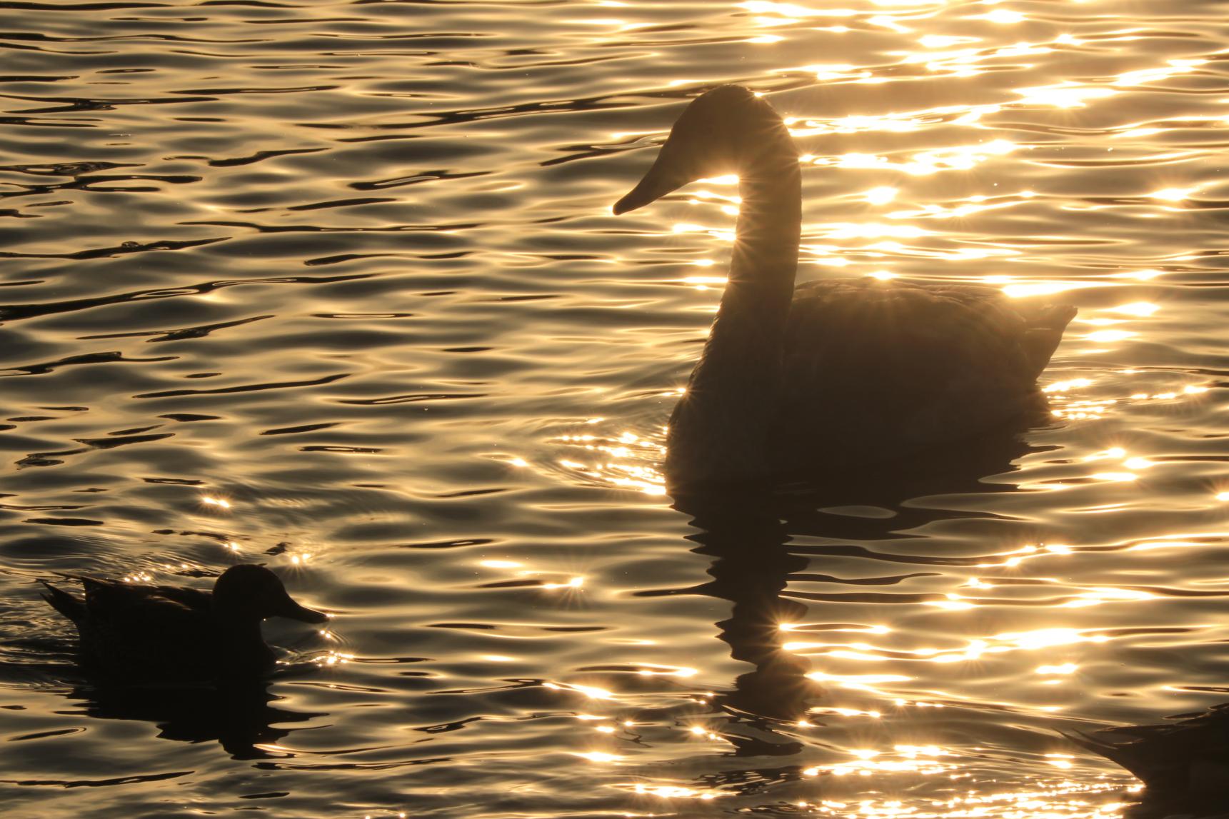 夕方、管理人の方から許可をもらい、子供たちはえさをあげる体験をしました。「わぁ、食べた!すごい!すごい!」と喜んでいました。白鳥だけではなく、多くのカモも近づいてきては、えさをほしがっていました。