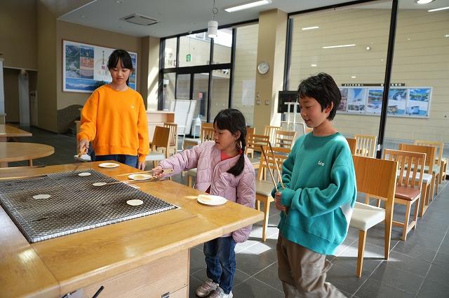 思いっきり遊んだ後は、カフェやお土産物も充実している「ささら屋立山本店」へ!ここでしか体験できない「しろえびせんべい」の「手焼き体験(100円で2枚)」も大人気です。