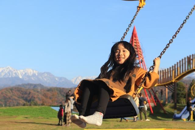 カラフルな大型遊具は映え、晴れた日には立山連峰を一望できる絶好のロケーション!来てよかったと思わせてくれます。0歳の赤ちゃんから小学生くらいまで楽しめる子供たちも大好きな公園です。