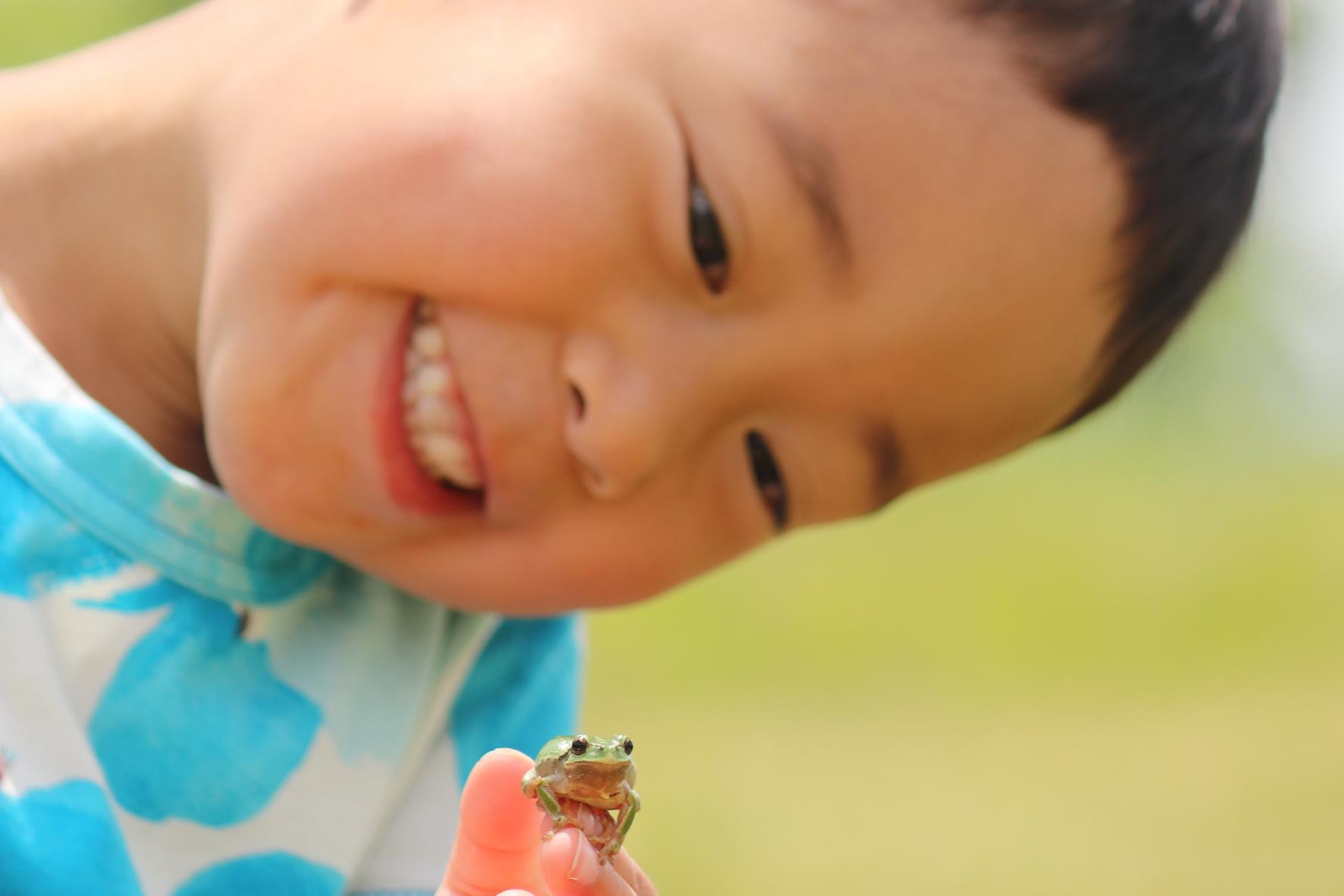 お散歩コースでは、小さな池もあり、鯉が泳いでいます。また、トンボやカエルといった生き物にも出会うことが出来ます。秋に訪れたときは、紅葉した木々の周りを無数のトンボが飛んでいました。広い芝生広場では、ボール遊びや虫取りなどを楽しんでいるご家族もたくさんいます。ボールや虫捕り網なども持っていくのもオススメです。
