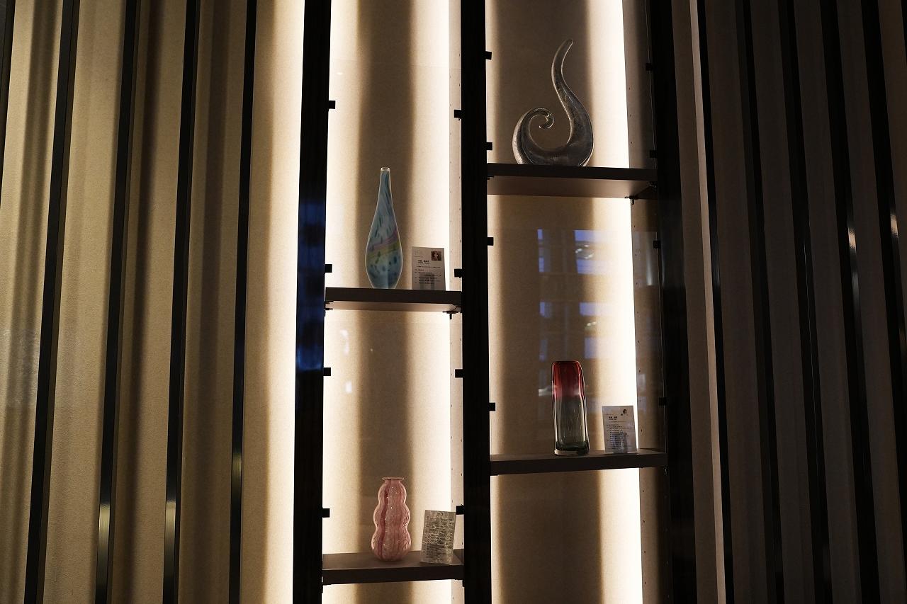 まず、目についたのは、綺麗な生け花とガラス作家さんたちの作品でした。明るいロビーから聞こえるおもてなしの声と明るい笑顔。みなさんに「富山へようこそ!」と言っていただけているような思いになりました。