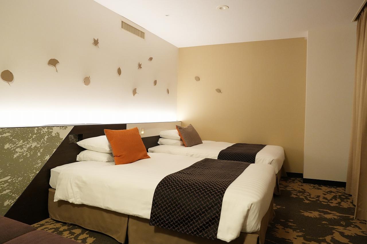 客室からの富山市街の眺めも最高です。広々としたベッドに清潔感あふれる室内。お風呂場も広く、足も延ばせ、リラックスできます。また、随所に「富山」を感じることが出来るホテルです!