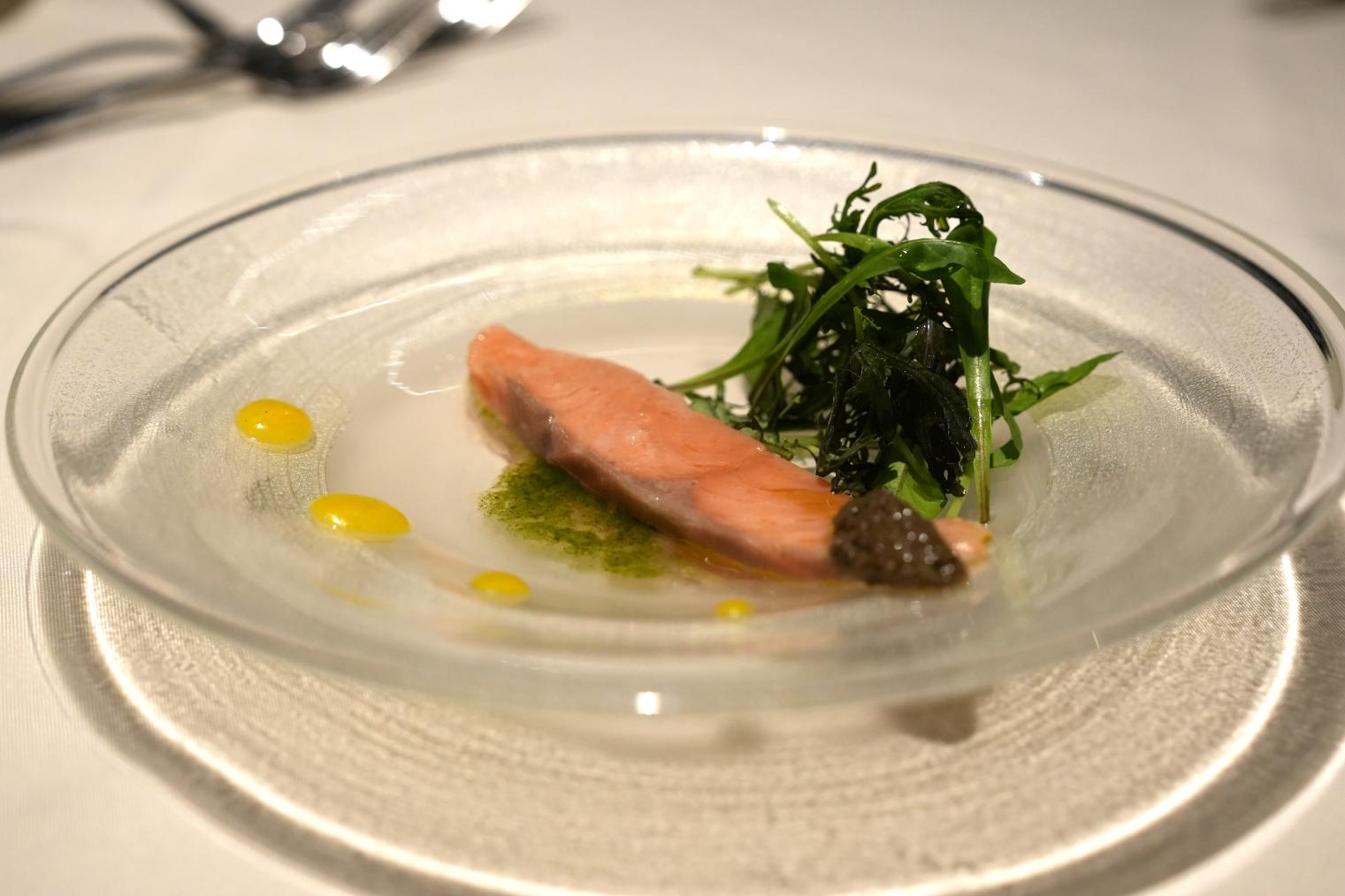 一皿一皿、見た目も美しく、食べるのがもったいないくらい!「サーモンのミキュイ」は外側は焼かれ、中はしっとりとした食感が楽しめました。また、3種類のソースが絶妙で、ここでしか味わうことの出来ない料理に感動の連続です。ゆっくり流れる時間は、ほんとに贅沢で、夫婦で笑顔になり、会話も弾みますね!