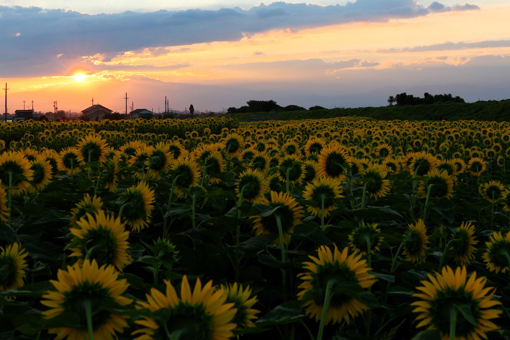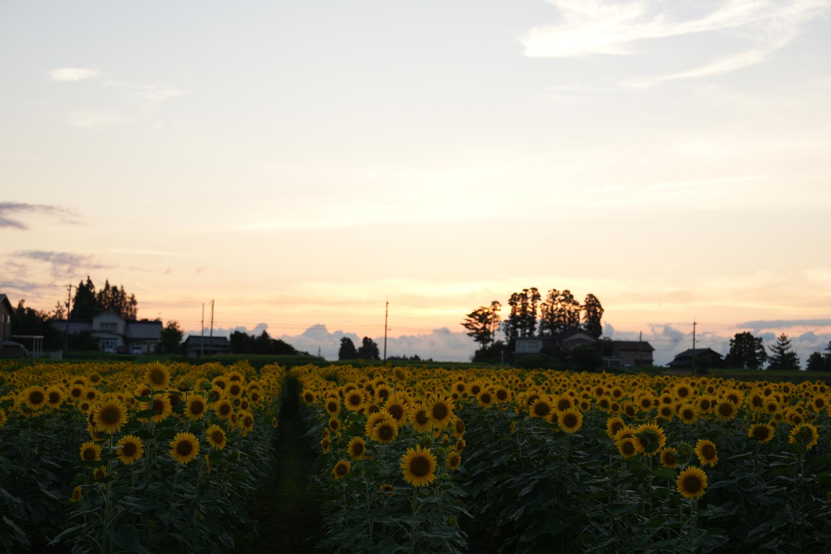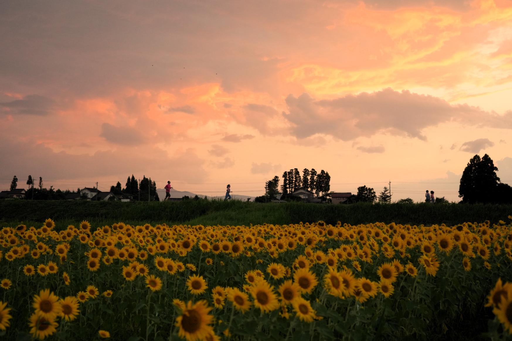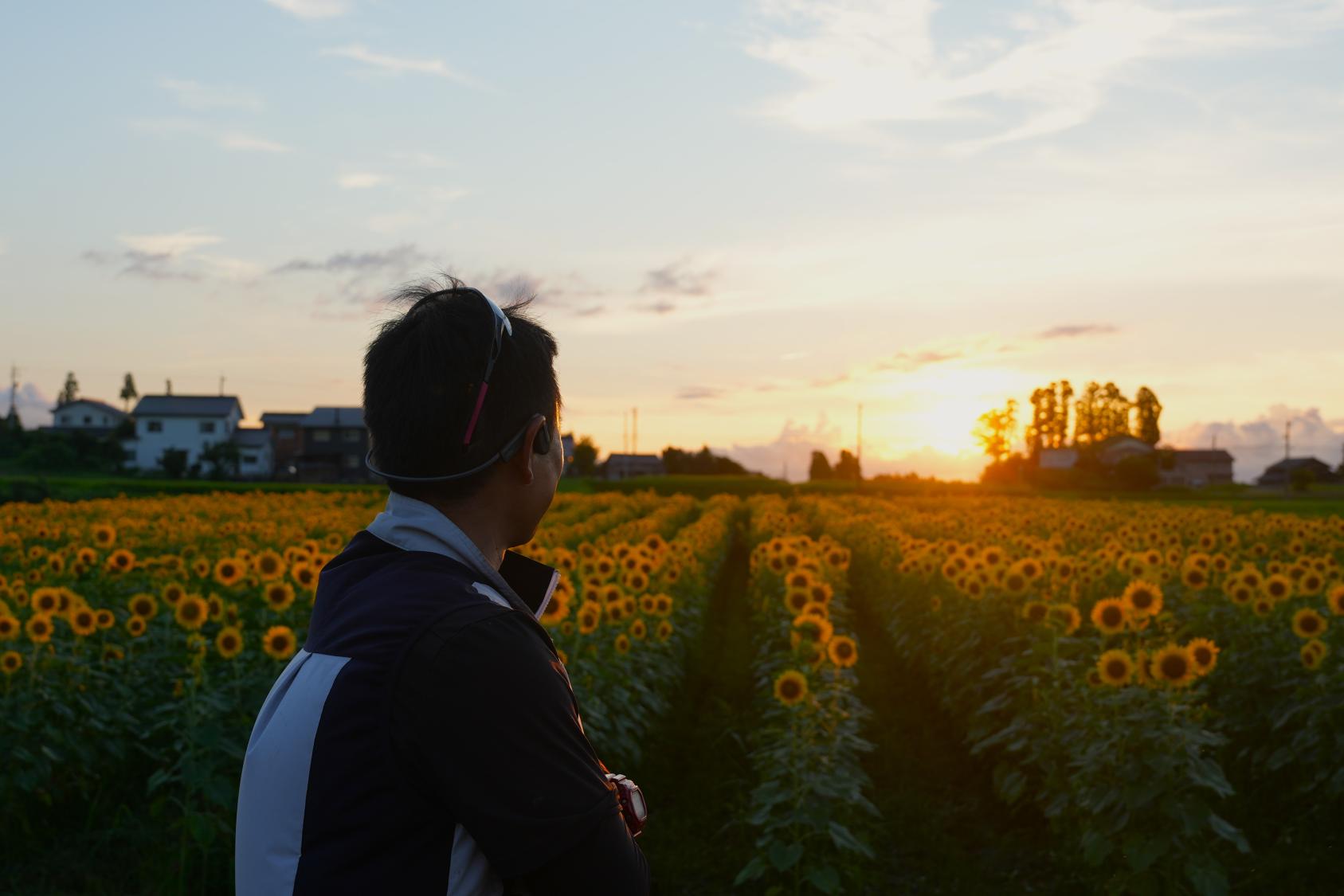 「夕陽とヒマワリ畑、いいよねー!」とこのヒマワリ畑を手がけてくれている地域の方が笑顔でお話されていました。