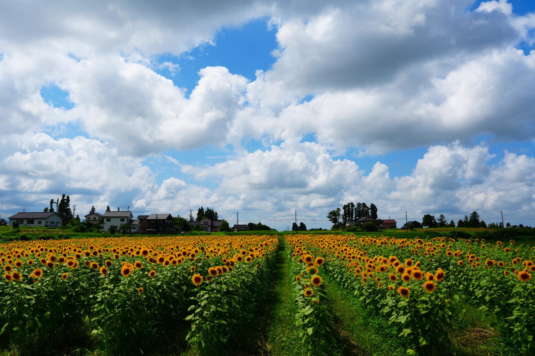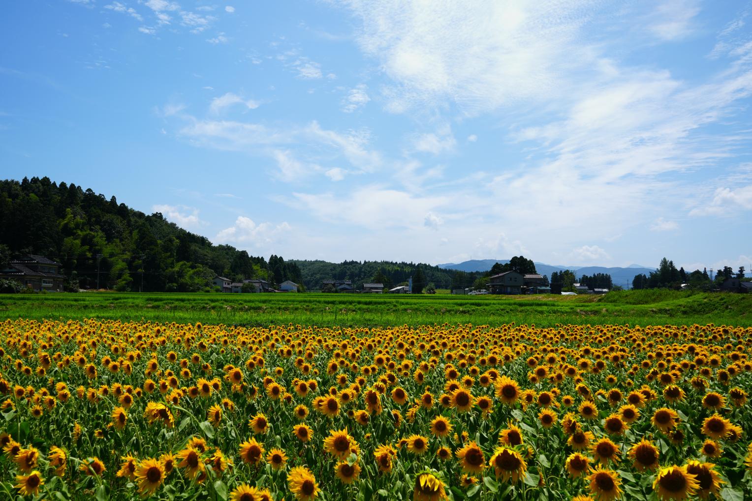 【スポット②】富山市万願寺 田園風景の中に広がるひまわり畑