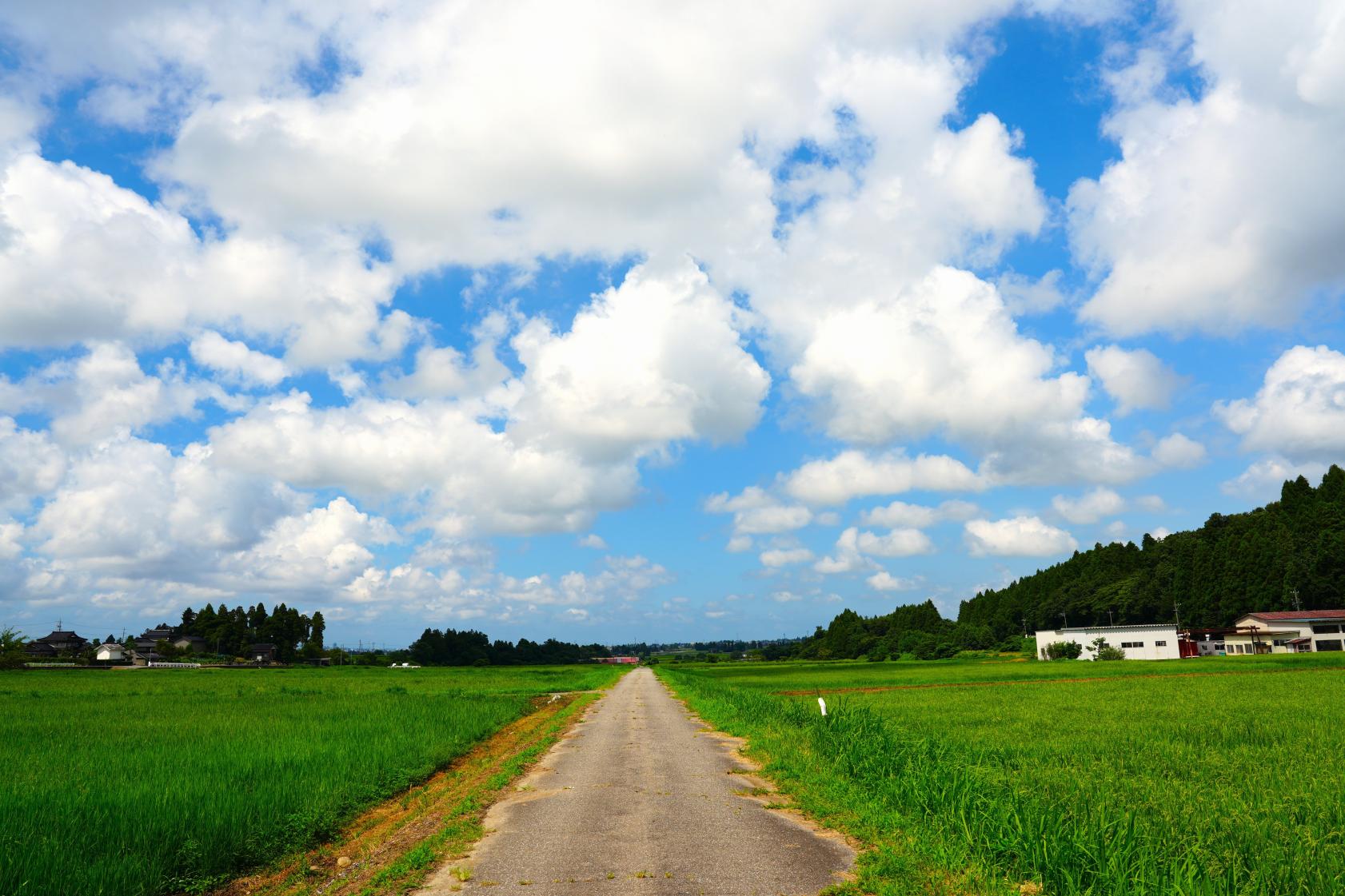 2025年夏、この道の両側にヒマワリ畑ができます。田んぼに囲まれたヒマワリ畑。この景色が「富山市万願寺」にあります。旧大沢野地区、猿倉山にも近い場所です。