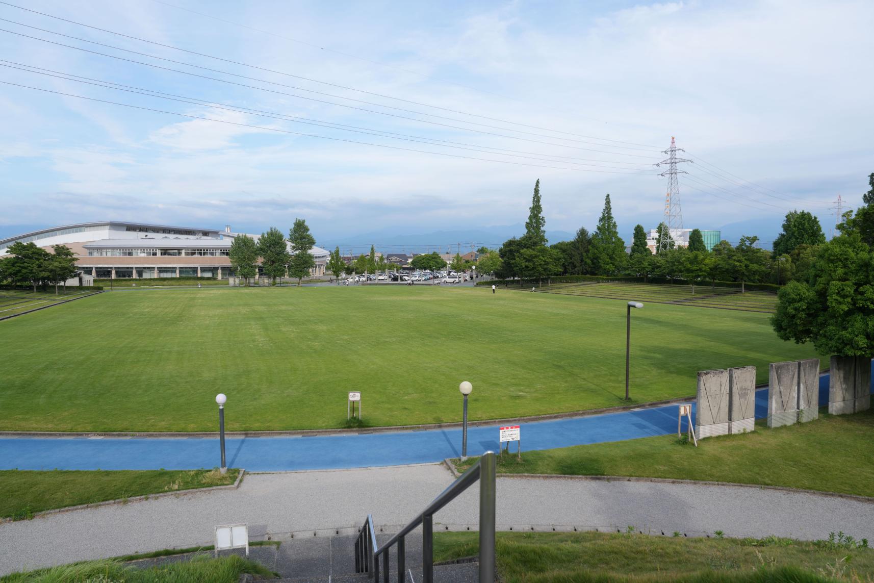 この公園の魅力は、開放感あふれる広大な「芝生広場」、四季折々の風景が楽しめる小高い「四季の丘」、そして夏には水遊びが楽しめる小川があることです。さらに、遊具や砂場も完備されており、子どもから大人まで充実した時間を過ごせるスポットです。お天気がいいときは、丘の上から立山連峰も一望できます。
