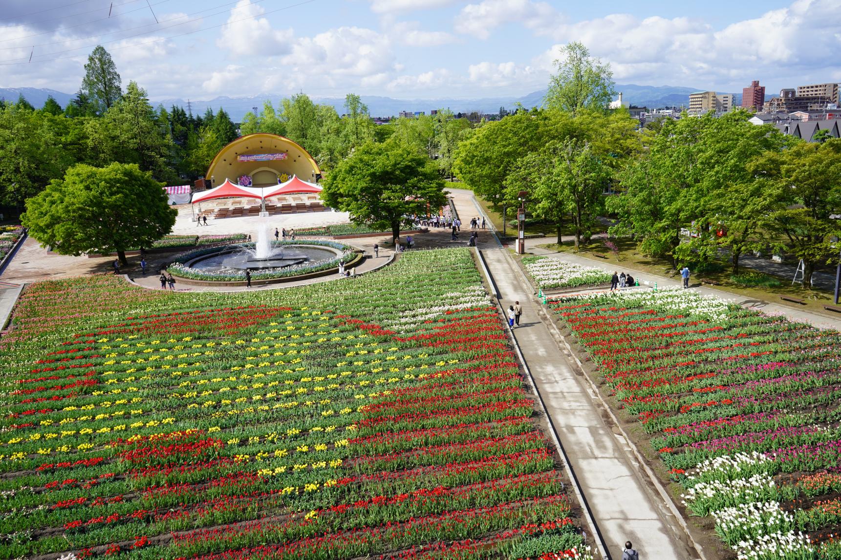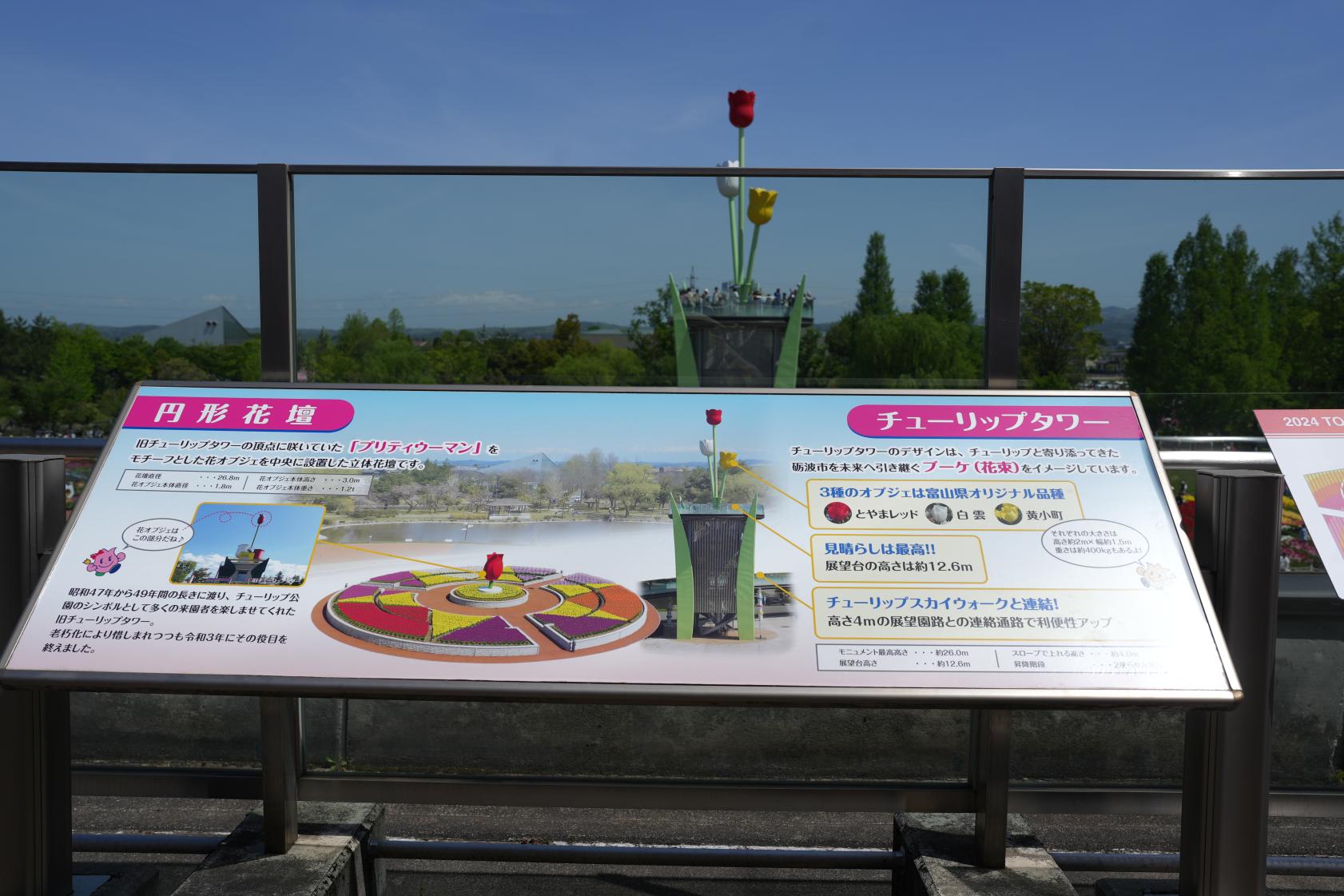 チューリップタワーは、登るための列が出来ていることがありますが、ここは、比較的すぐに登ることができる絶景スポットです。晴れているときは、立山連峰も望むこともできます。北門の出入口からも近いため、帰りに立ち寄ることも多いです。大花壇からチューリップタワーまで見渡せる風景を、ぜひ楽しんでください。