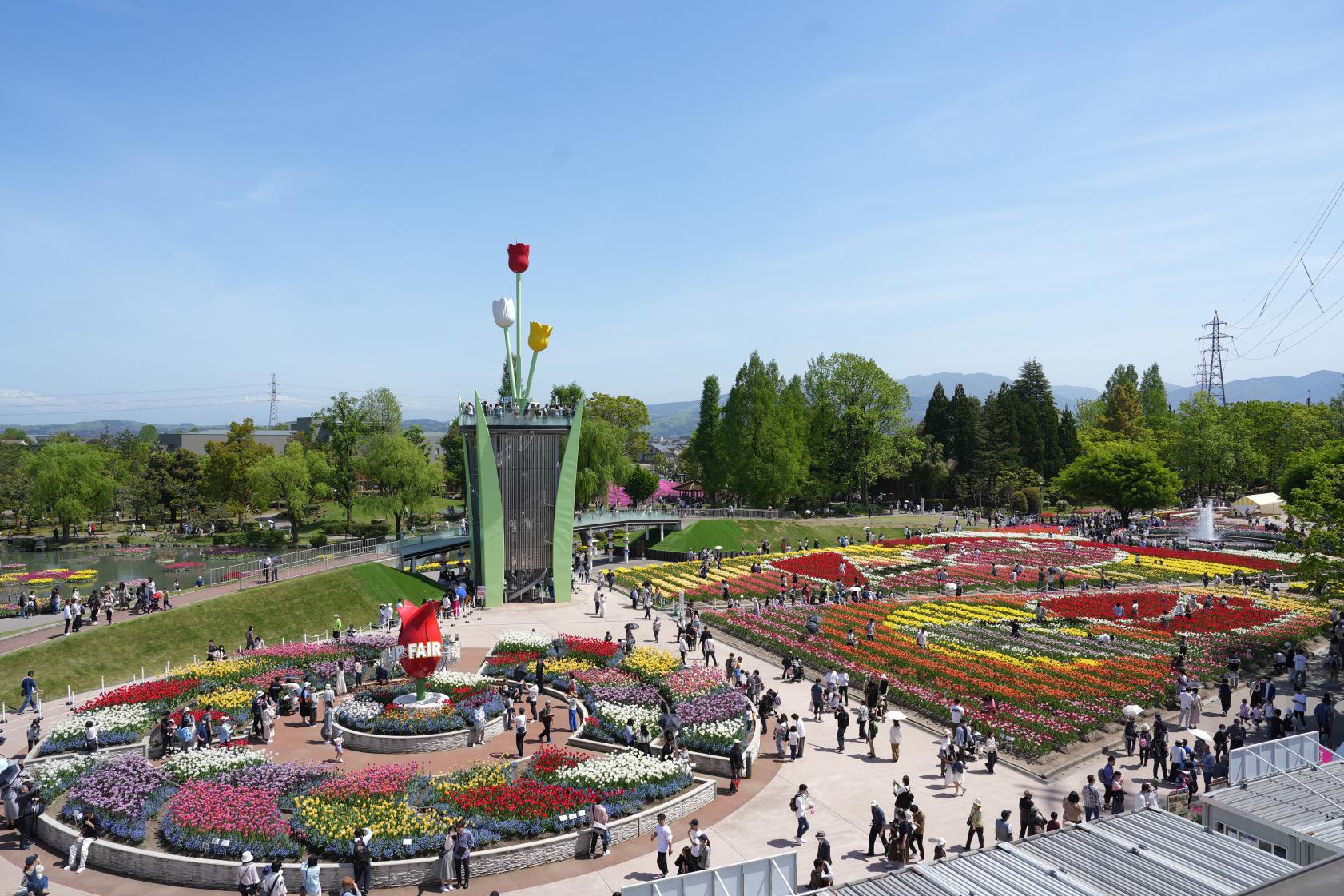 約21万本のチューリップから作られる地上絵は、毎年、違うデザインになっており、タワーからの眺めは圧巻です。今年はどのような絶景が楽しめるのか、ぜひ、現地でお楽しみください。
