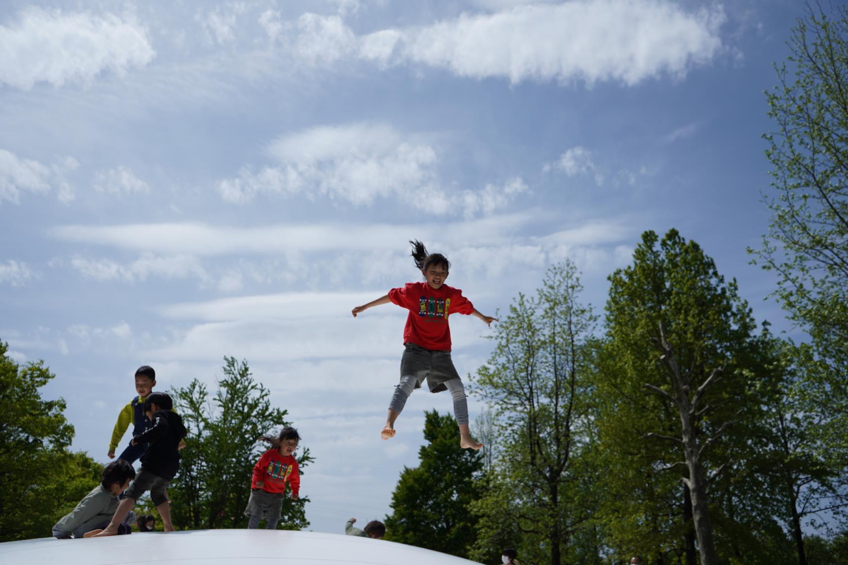 チューリップ公園内には、フェア中も遊べる場所が2ヵ所あります。カラフルなバルーンの横には、「ふわふわドーム」や「滑り台」など、小さいお子さんも遊べるスポットです。また、中央ステージ横奥にも「ブランコ」などの遊具がある広場があります。チューリップの美しい景色を楽しみながら、公園でも思いきり遊べるのは、家族連れにとって嬉しいポイントですね。
