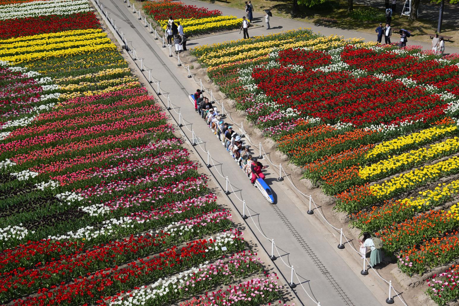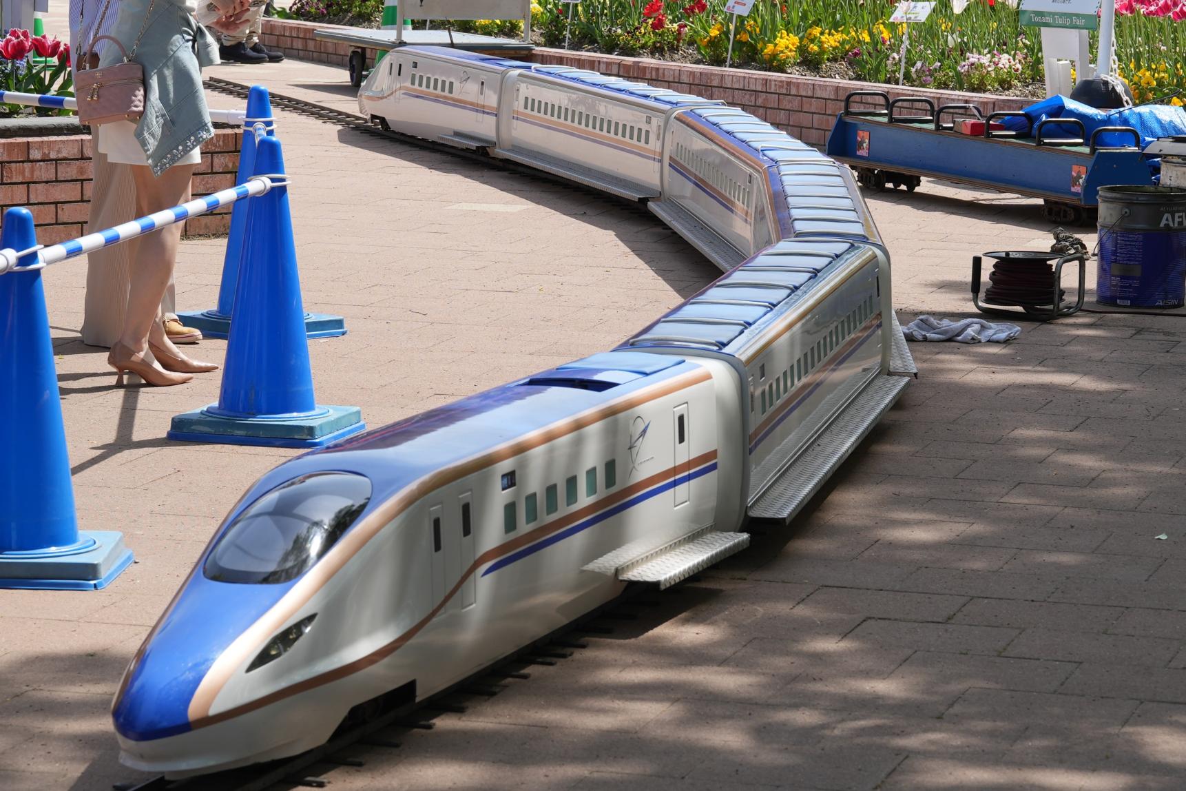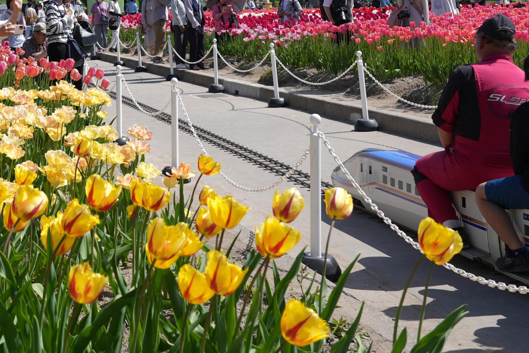 大花壇にある通路をミニ新幹線が走り、その新幹線に乗れる催しも大人気です。また、吹奏楽部の演奏会やチュリーップパレードなど、多彩なイベントがあります。イベント期間中に開催され、スケジュールが決まっています。公式ホームページよりご確認ください。
