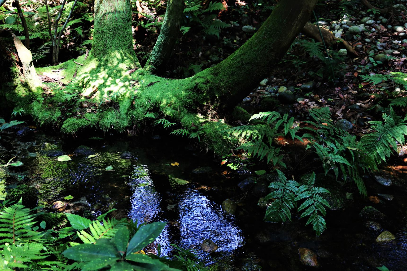 スギ林を通り抜けると、小川が流れています。ここのお水が、びっくりするほど冷たくて、綺麗です!ぜひ、体感しに行ってみてください!