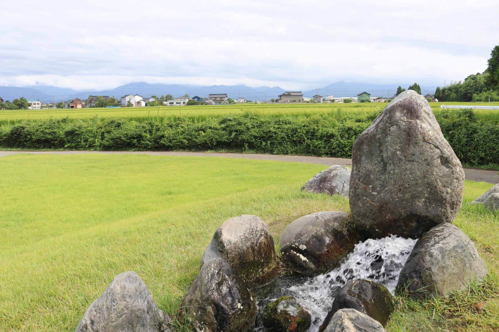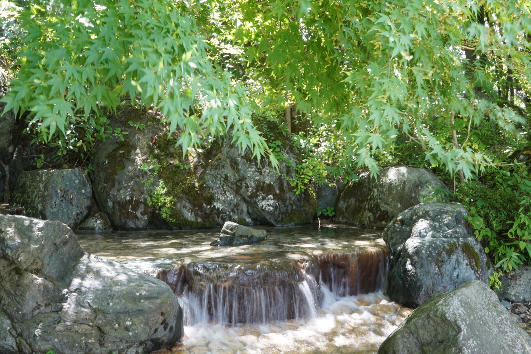 緑に囲まれた中、あふれ出る水。水はとっても冷たく、綺麗でした。ここに子供たちは興味津々!なぜあふれ出ているのか、上へ上へと昇り、確かめに行ってました。周りは石です。滑ったり、転んだりしないように、気を付けて遊んでくださいね。