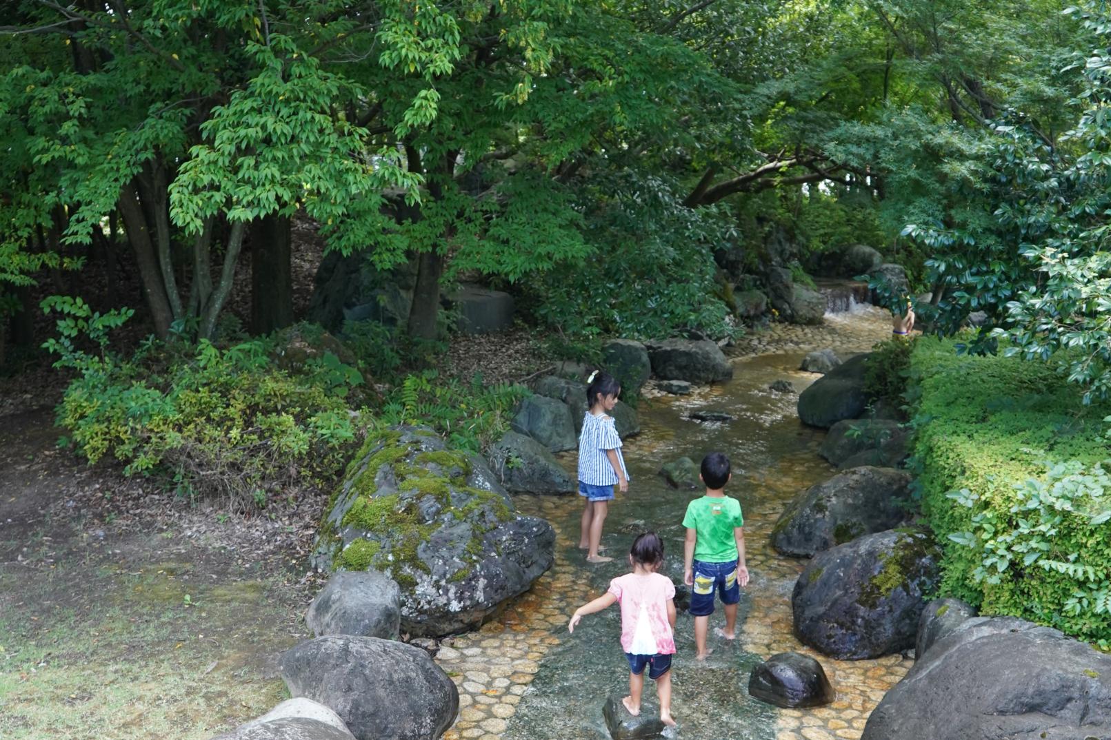子供たちがまた行きたい!また行きたい!と何度も言うほど、とても充実した公園です。水遊びは、親水広場でできます。とっても浅いので安全です。上からシャワーのように水が降り注ぎ、暑い日は心地よさそうです。