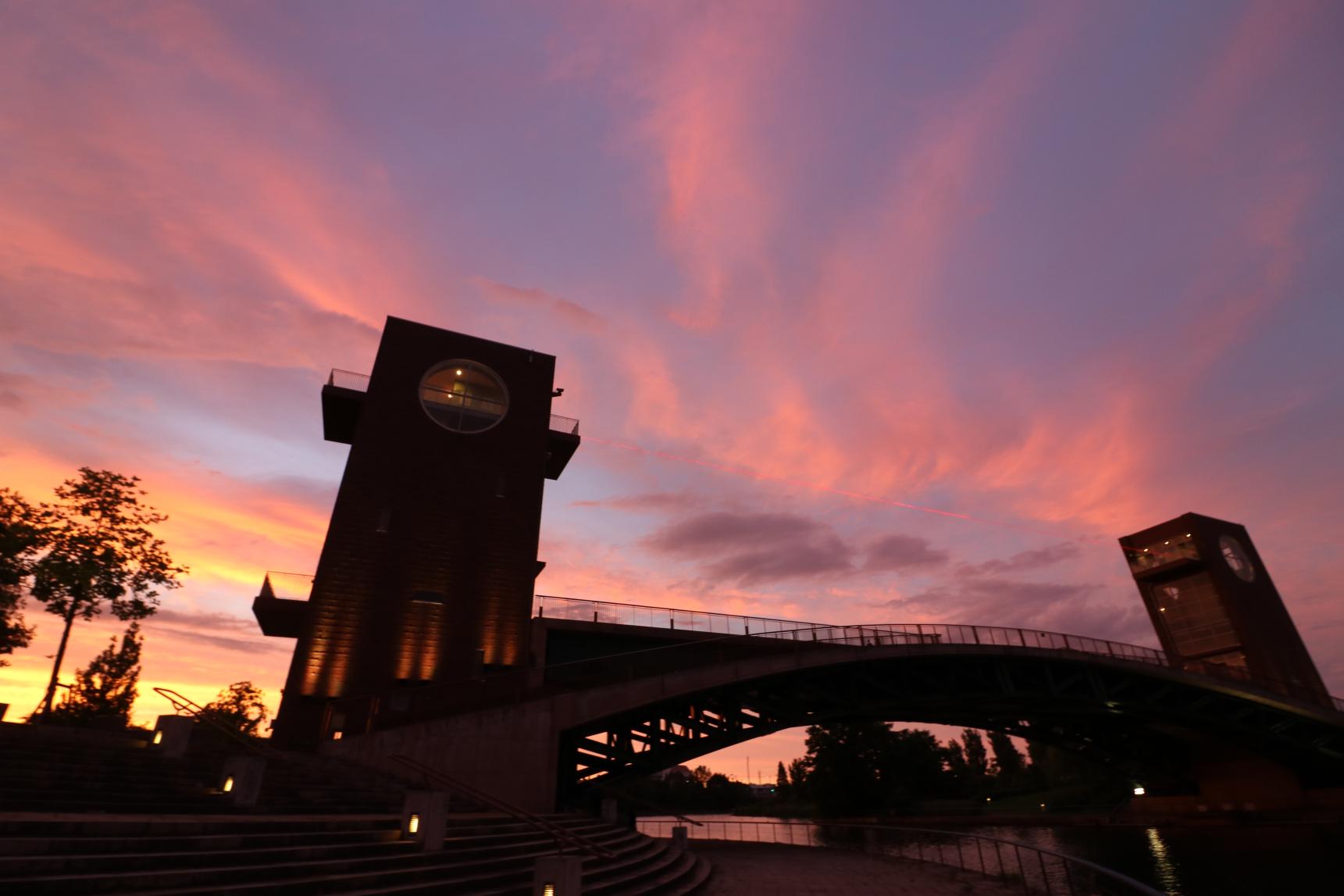 夏の夕暮れ時です。刻々と変わる空の色。赤く染まる雲。ずっと眺めていました。太陽が沈む前後、「富岩運河環水公園」をお散歩してみてはいかがでしょうか?