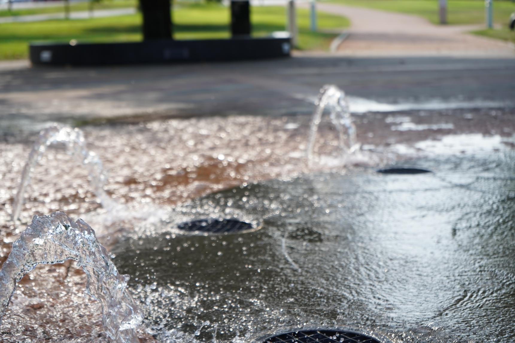 「富岩運河環水公園」の噴水も水遊びスポットです!