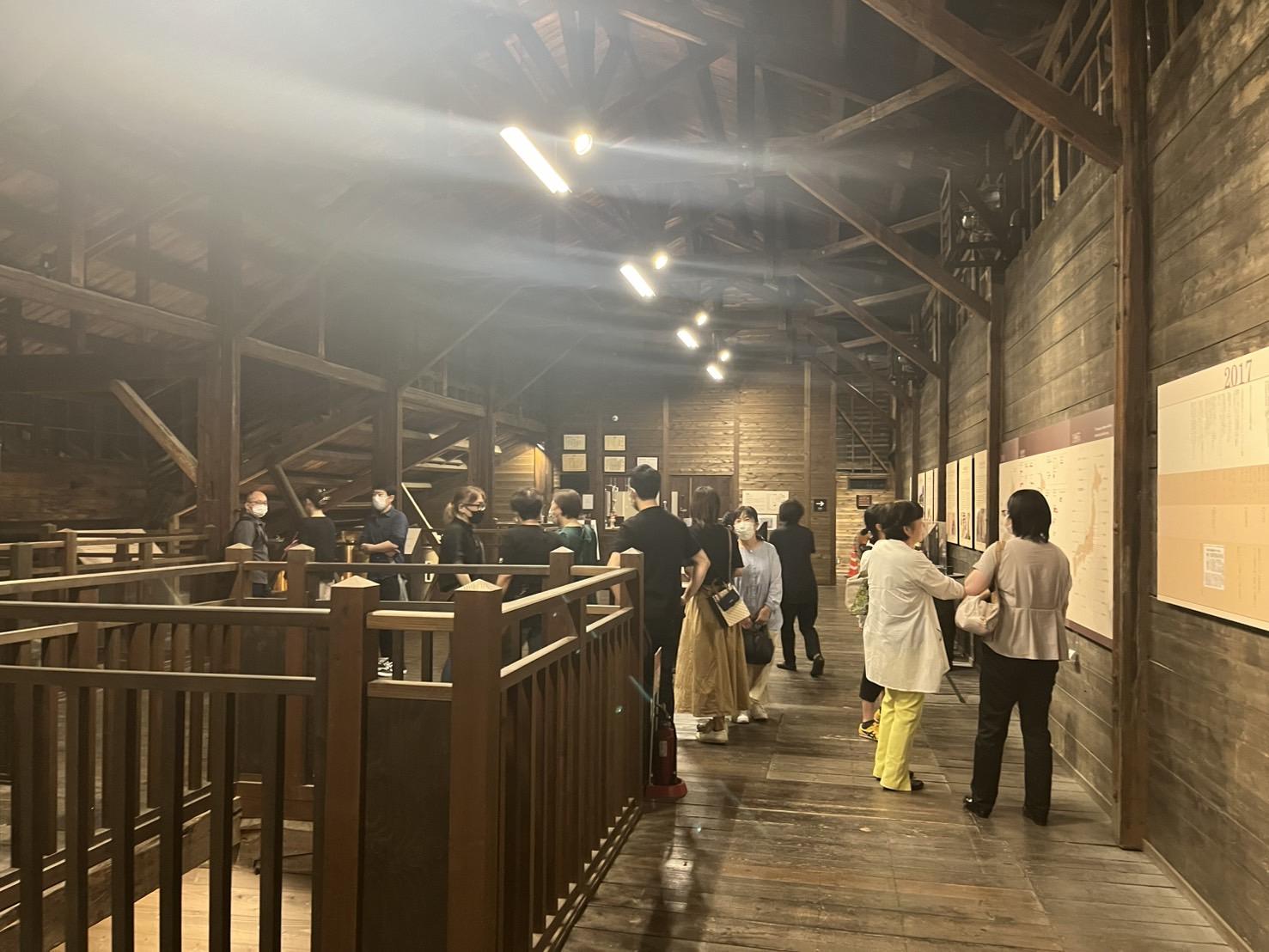 ナイトツアーの参加者は同施設内の「大正蔵」に集合、ガイドの概要説明の後、三郎丸蒸留所へ向かう。100年以上の歴史のある瓦屋根と白壁の2階建て蒸留所が照らされる様子は、レトロ感と温かみがあり、思わず写真に収めたくなる風景だ。