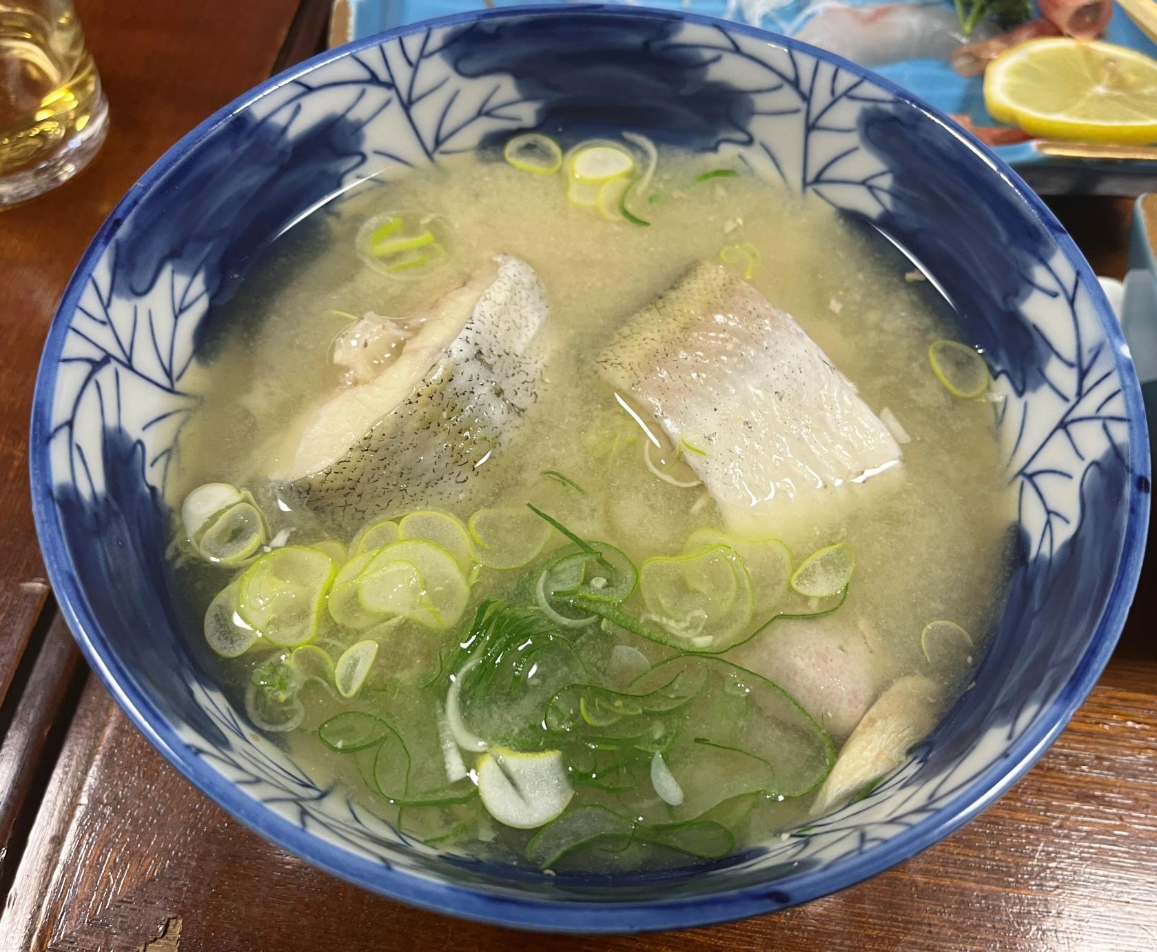 最後に出て来たのは朝日町名物のたら汁。白みそのあっさりした優しい味わいとふっくらとしたタラの身、アクセントとなるネギ。アルコールで多少荒れた胃を落ち着ける風味。白ご飯と一緒に食べ進み、完食。