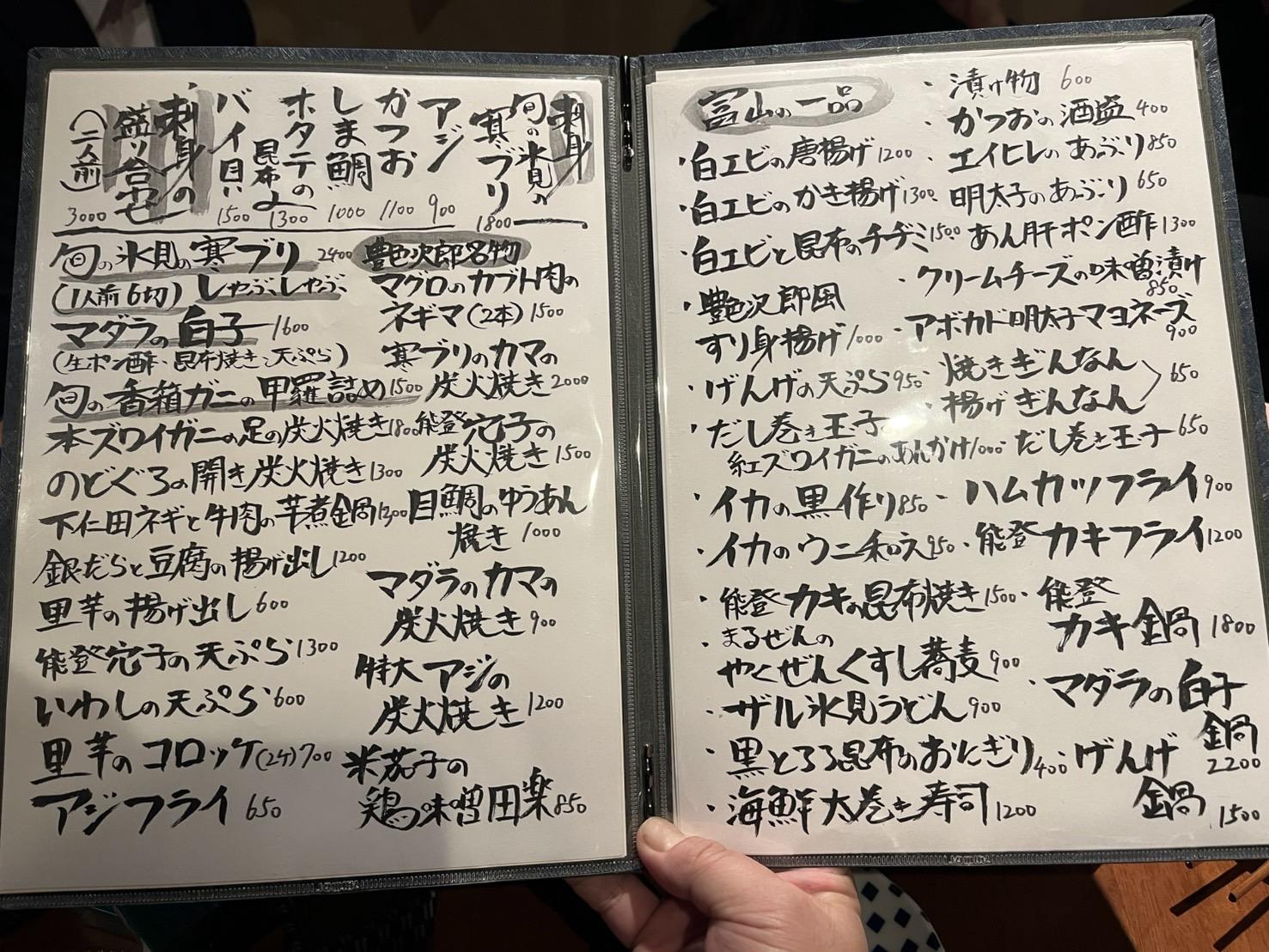 あまりの飲みやすさに、深酒の予感を感じ取った先ほどの関西人が思わずつぶやく。ここからは日本酒祭りが開幕し、勝駒(かちこま)大吟醸や千代鶴(ちよづる)大吟醸、曙などの中々飲めない地酒を次々と注文し始めた。