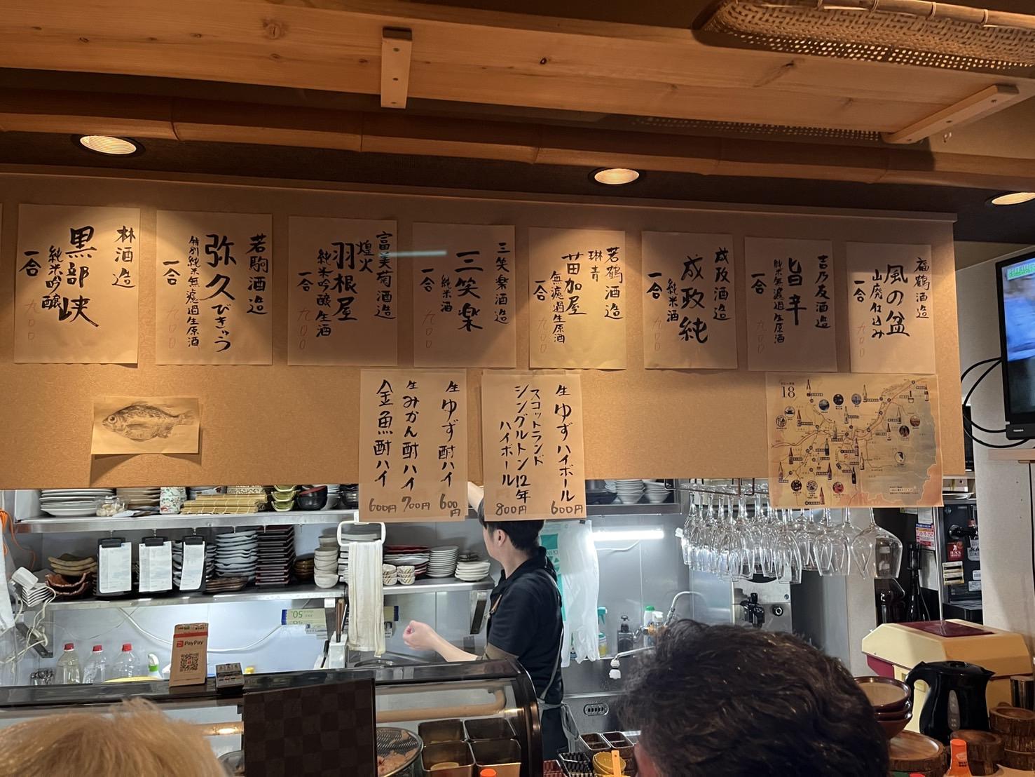 壁に貼られたメニューを見て、日本酒好きの関西出身メンバーが目を輝かせる。