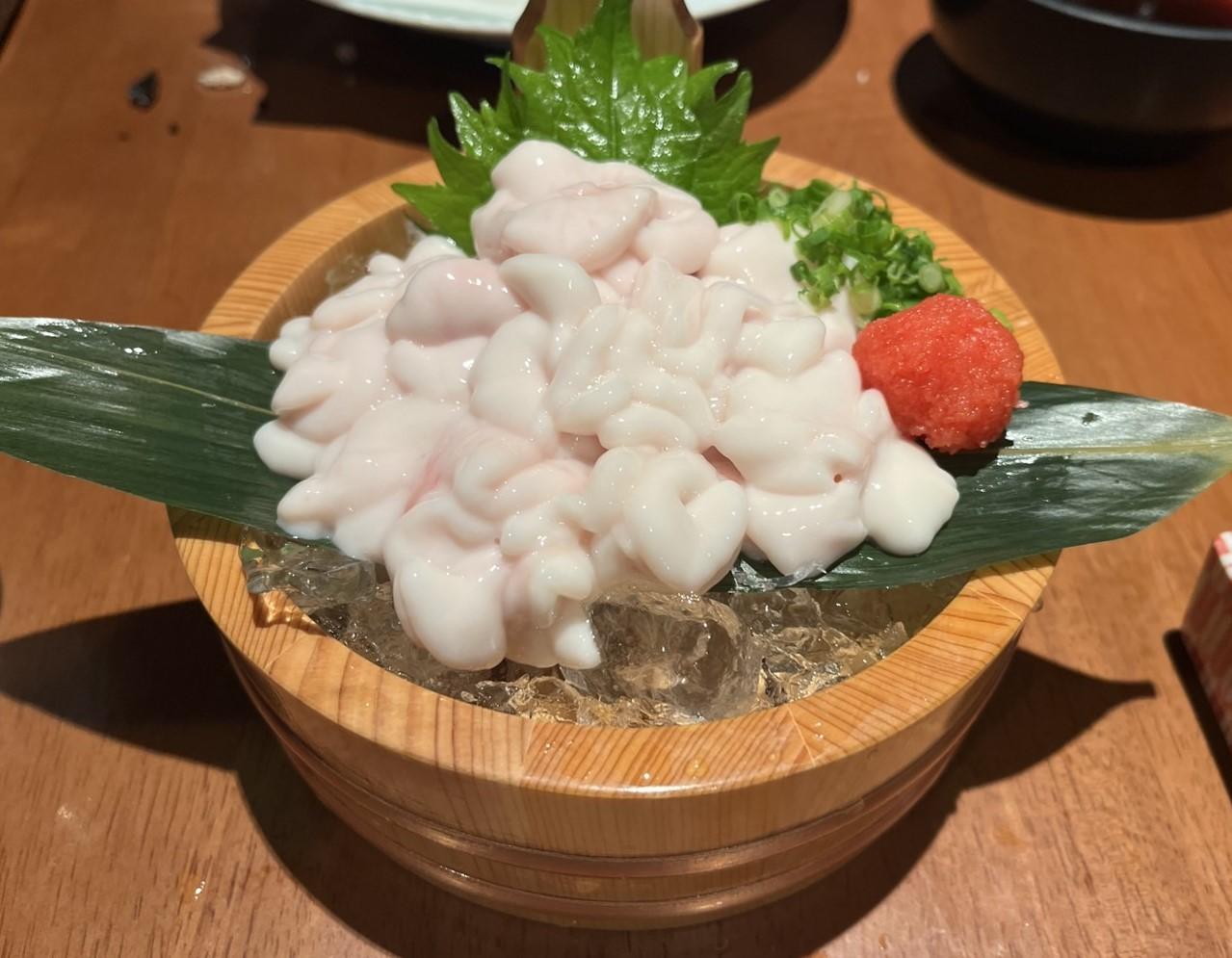 ほんのりピンクに色づいた鮮度抜群なマダラの白子。妖艶な様子に誘われ自然と手が動く。あと何度自分自身を縛り付けるであろう痛風にまつわる数値も忘れ、ポン酢をつけてたしなむ。
