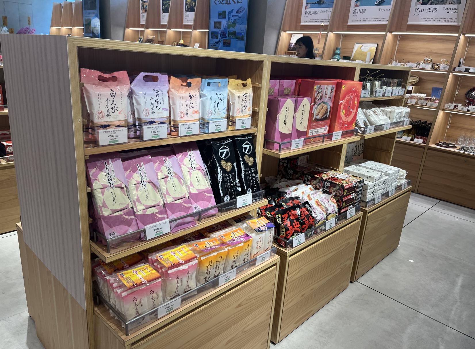 「物販エリア」定番から通好みまでの富山県特産品100点を揃える