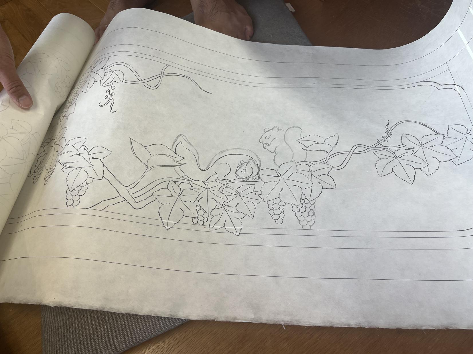 9月から12月が受注のピークになる天神様は、約1カ月かけて一つの作品を仕上げるペース。らんまはお客の家を訪問し、家の作りと配置場所を確認、それに見合う図案を描いての打ち合わせを経て彫刻作業に入る。お客と向き合って作品を最後まで仕上げるのも仕事の面白さだという。