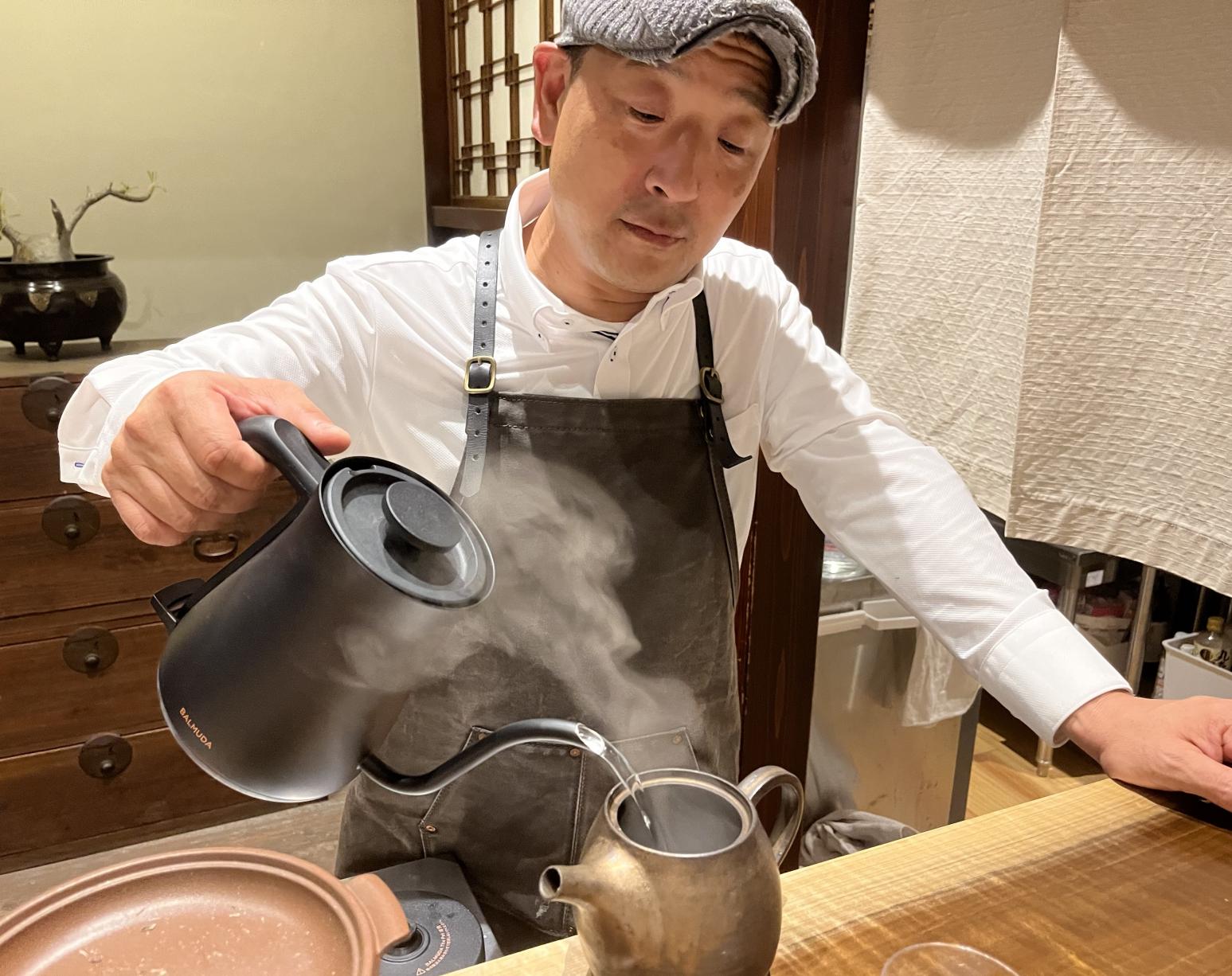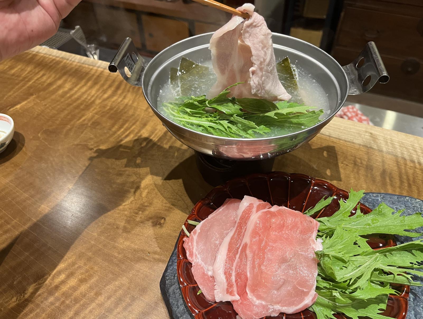 七品目は昆布締めにした豚肉のしゃぶしゃぶ。肉が柔らかく、風味が染みこんだまろやかな味が噛むほどに口に広がっていく。最後に昆布おにぎりと昆布ほうじ茶で締めた。昆布という衣によって、味の濃淡ある全ての料理が優しく包まれているかのような食体験だった。効能なのか分からないが、食べる前よりも胃腸の調子が上向きになった気がした。