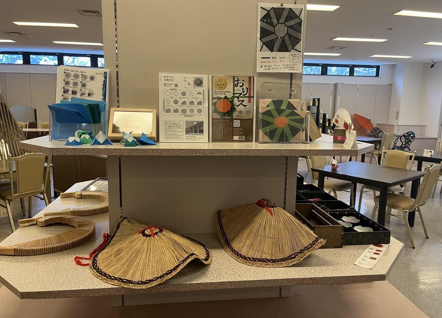 施設に入ると、グレー調の落ち着いた内装に仕上げられたフロント周りが上質な雰囲気を演出しており、気分が高まってくる。フロントの反対側には日本や富山の伝統文化体験コーナーがある。ここでは水引きや書道セット、こきりこに使う打楽器「ささら」や、越中おわらの「編笠」などが置かれ、追加料金なしで体験できる。外国からの宿泊者に人気で、今後は地元の人と協力して本格的なワークショップを開催し、さらに文化発信の場所とする予定だという。