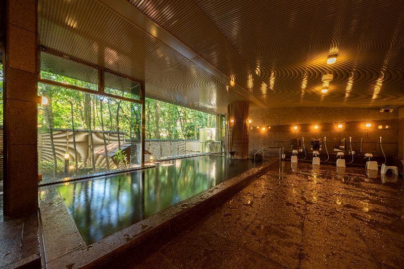 宿泊者専用の大浴場はルームキーで入室する。内湯と露天風呂、サウナがあり、浴場内はシンプルで上品な雰囲気に改装された。露天風呂は温泉で、サウナは当日と翌朝も利用できる。洗い場にはついたてが設けられ、他の宿泊者との配慮がなされている。