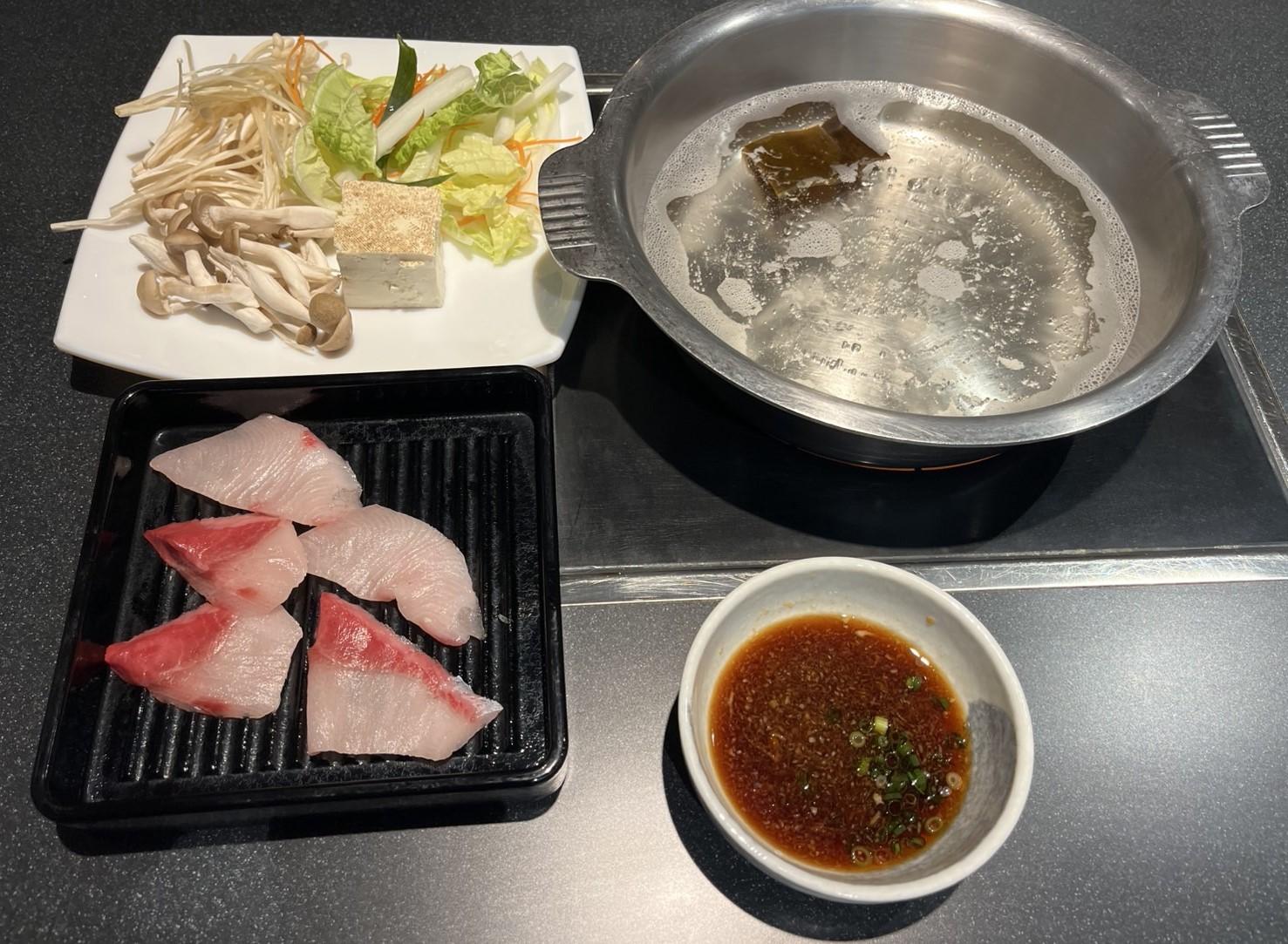 一押しはブリしゃぶの食べ放題。席にはあらかじめ鍋がセットされており、具材を取ってきて、席で調理して食べるスタイル。ブリを鍋にくぐらせ、脂が落ちてさっぱりとした旬魚の味わいを楽しんだ。