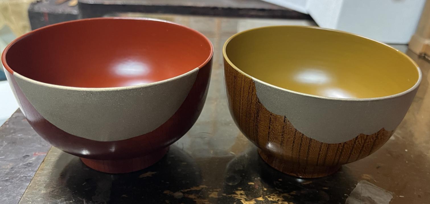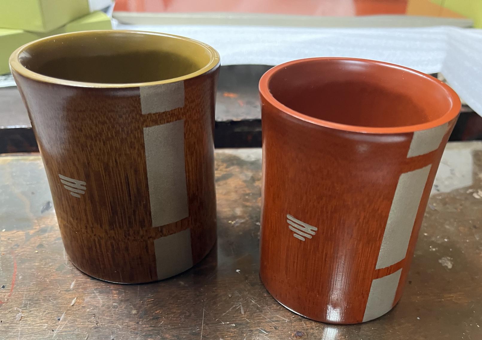 里山保護のために伐採した竹を使ったコップや、木材店で製材後に余った木を仕入れて作ったトレイなど、再利用を心掛けた製品制作にも取り組む。作品には、木地の木目が見えるよう、薄く塗る技法の「拭き漆(ふきうるし)」も取り入れている。