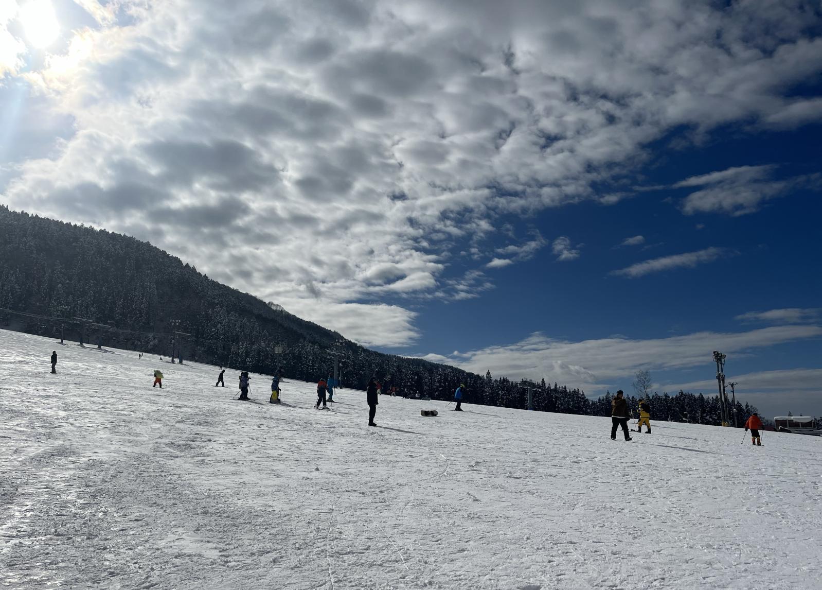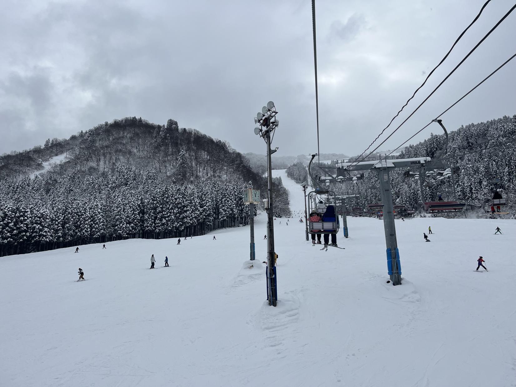 午後からの滑走はリフトを乗り継いで中腹へ。頂上まで攻めたいところだが、てっぺんはコブだらけの急斜面モーグルコースで、小学生の時に半泣きになりながら滑る、というよりも転げ落ちて来たトラウマがあるため、今回は断念した。