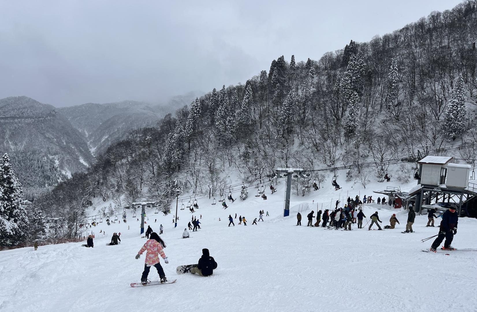 日の射した中腹から彼方に富山湾と富山平野が見え、スキー場ならではの絶景に気分も晴れやかになる。北海道のニセコ等の有名スキー場は今、インバウンド観光客で大人気となり一杯のラーメンが3000円と物価高騰していると何かのニュースで見たが、富山県にも外国人を充分に魅了できるスキー場はあるのになあ、と旅行会社の頭で考えつつ、眼下のパノラマを改めて見渡した。